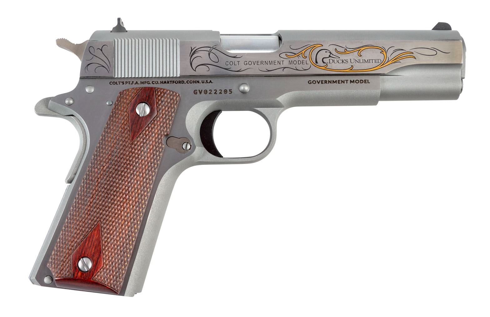 Ducks Unlimited is thrilled to offer a Colt firearm as its handgun of the year. Everyone is familiar with the Colt 1911 name and this one will be sure to impress. This series 1911 comes in .45ACP with a 5” barrel, all stainless construction, and the Ducks Unlimited logo on the slide and shield logo on the custom grip. Ducks Unlimited worked closely with custom firearms designers to make sure this year’s handgun compliments the engraving on the 2022 shotgun of the year, making it a perfect addition to any gun owner’s collection.