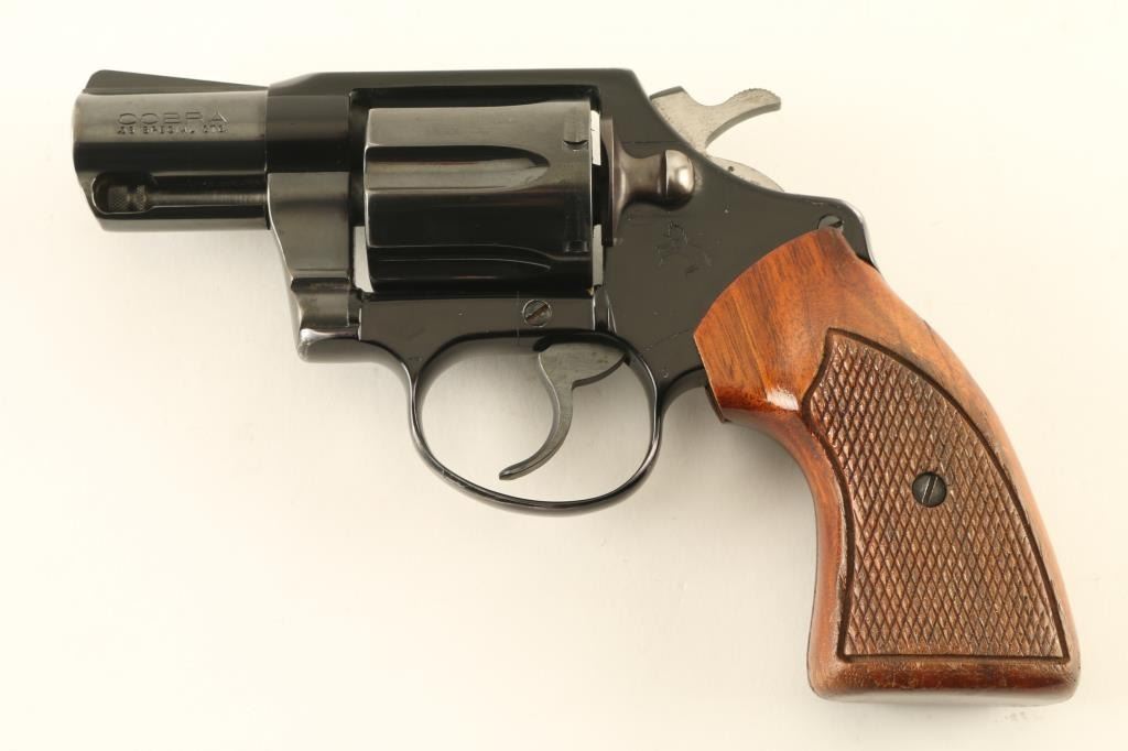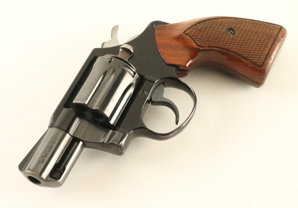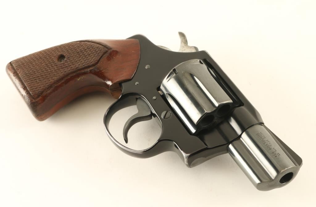 Double/single action revolver manufactured circa 1975. Features lightweight alloy frame, black/blued finish, checkered wood grips, 2" barrel, fixed sights, 6 shot cylinder. Bore and charge holes are very good or better condition. Retains 75% finish, with bare metal showing at sharp edges & corners of frame. Barrel and crane show as lighter and more gray than the cylinder & frame. Grips are very good condition. Cylinder latch sticks and is difficult to move, might improve with careful cleaning. Action is smooth with tight lock-up. Condition is NRA Good + *** Modern Firearm ***