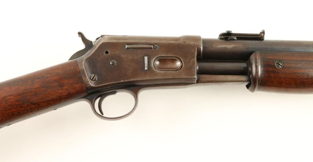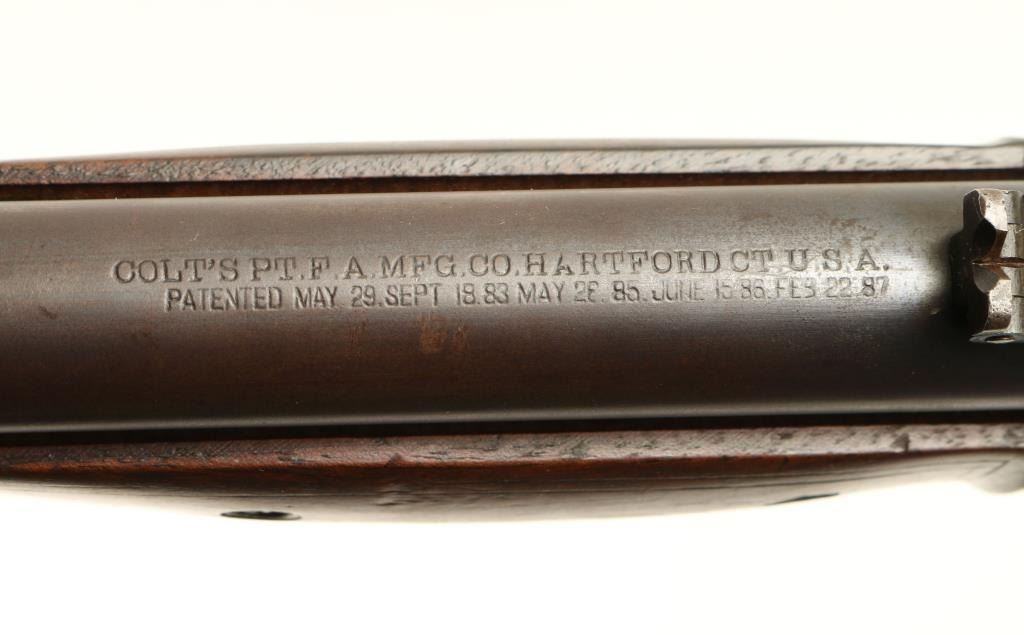 Colt Lightning pump action SRC, .44 caliber, 20” barrel, S/N 84283, blued finish, wood stocks in overall very good + condition showing original blue in protected areas of the barrel and loading tube plus protected areas of the receiver; finebore, crisp action, sharp markings and very good wood with some minor old mars and scratches to the butt stock from handling and storage. Consignor’s tag on carbine indicates shipping date of 2-16-1899 to H. Mandl & Co. but no supportingdocumentation included. An overall really nice Colt Lightning carbine. (Antique). Est.: $2,000-$4,000.