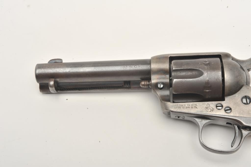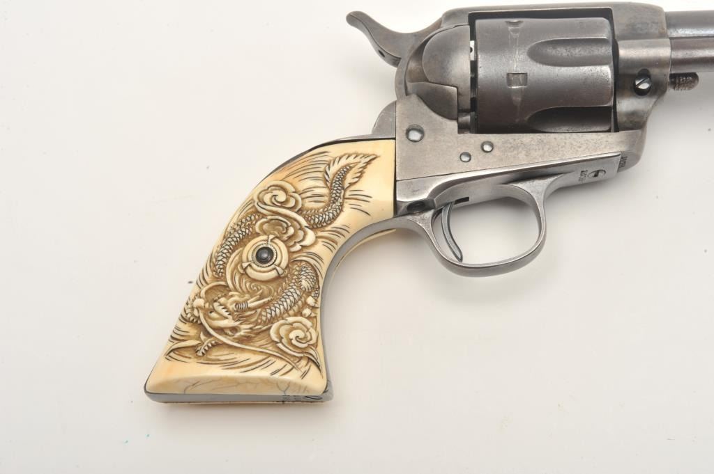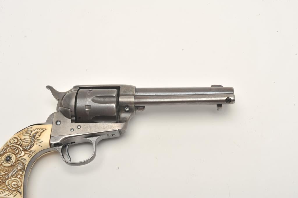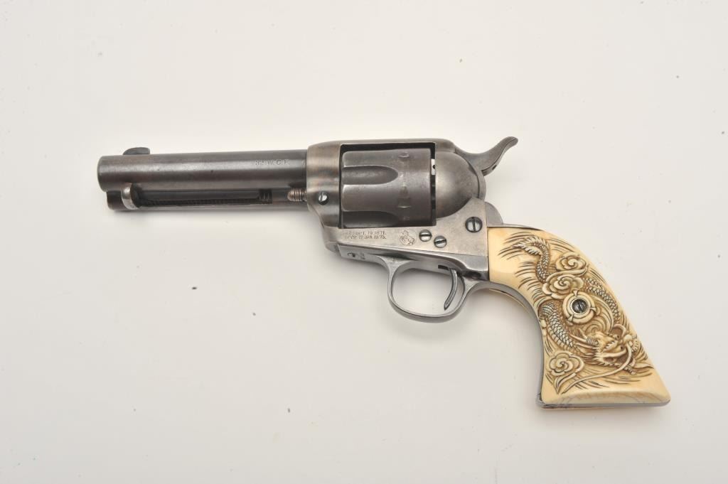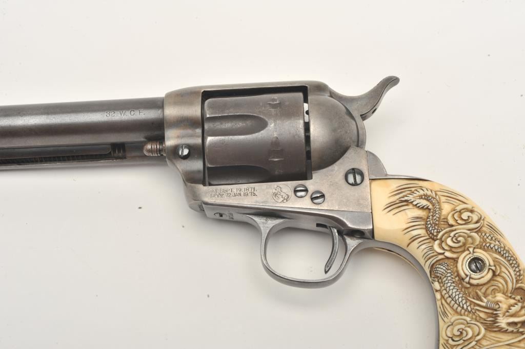 Colt SAA revolver, .32 W.C.F. caliber, 4.75” barrel, blued finish, old raised carved ivory grips,