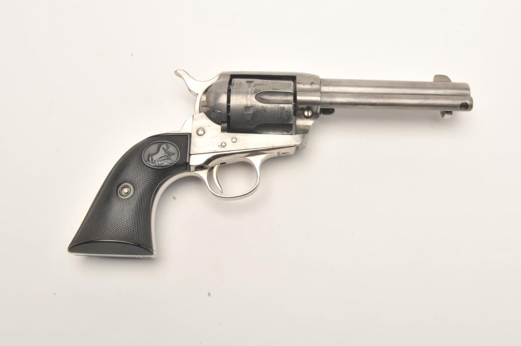 Colt SAA revolver, .41 caliber, 4.75” barrel, blued finish, checkered hard rubber grips, S/N 29097