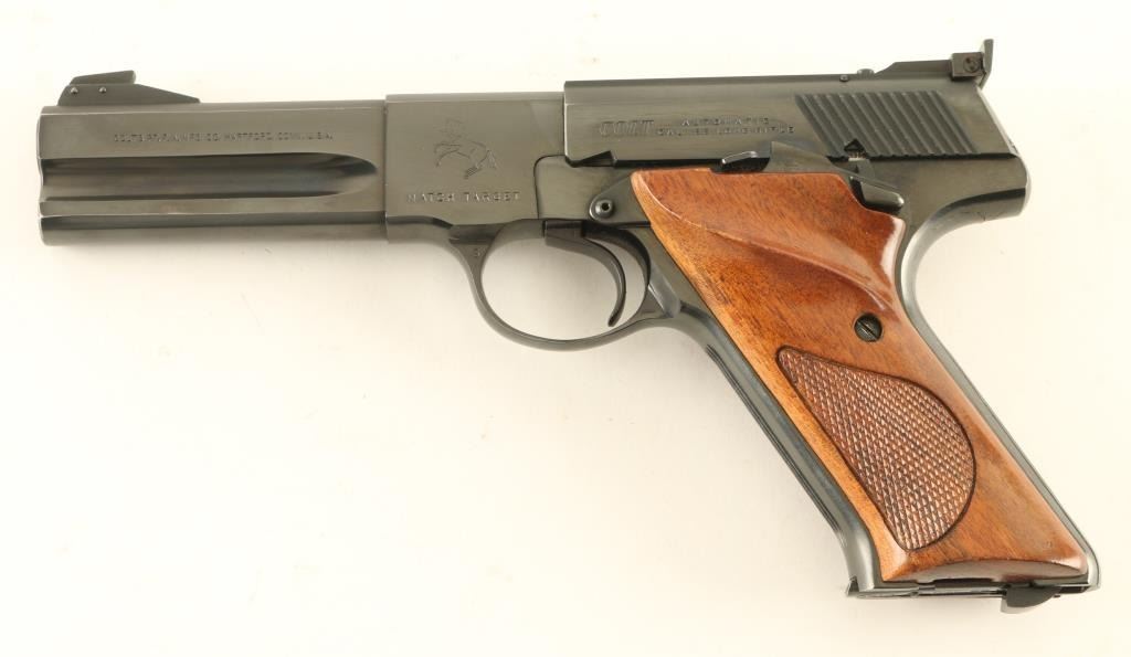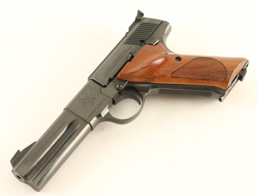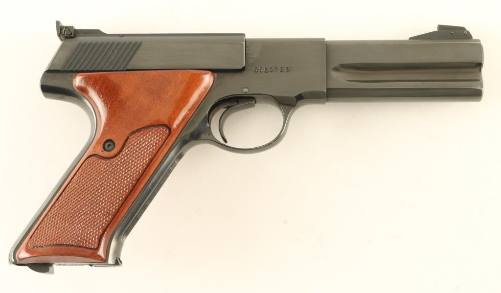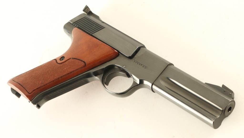'Third Series' semiautomatic rimfire pistol, manufactured circa 1975. Features blued finish, checkered wood grips, 4.5" barrel, adjustable sights, heel magazine release, manual safety. Bore is excellent. Retains 98% blue with few signs of handling or use. Grips are excellent condition. Includes (1) magazine. Condition is NRA Excellent *** Modern Firearm ***
