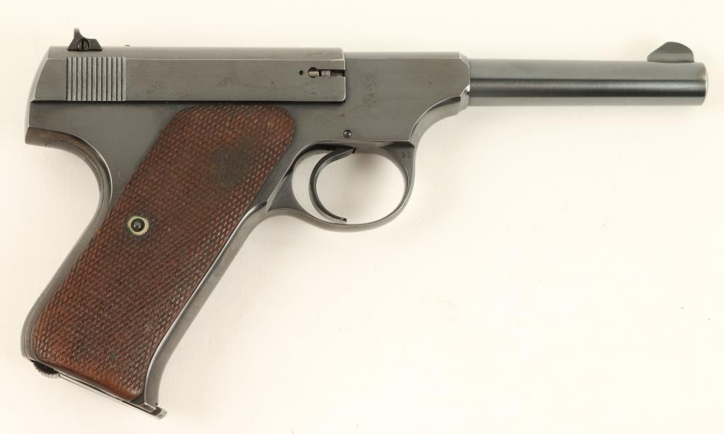 Colt Woodsman semi-automatic pistol, .22LR caliber, 4.5” barrel, S/N 144393, blued finish, checker