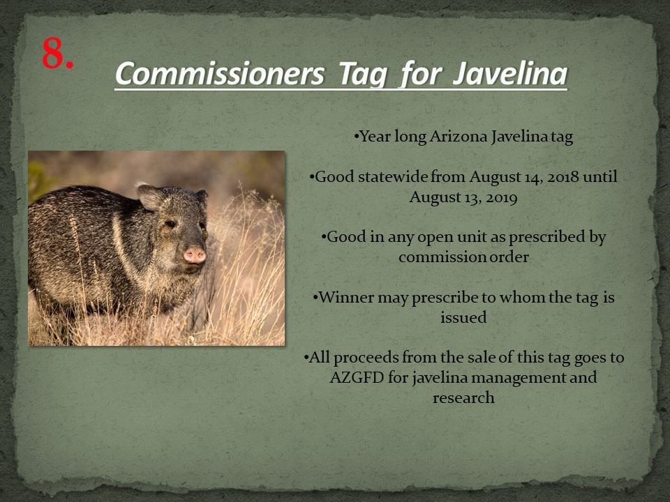 * ALL PROCEEDS FROM THE SALE OF THIS TAG GOES TO AZGFD FOR JAVELINA MANAGEMENT AND RESEARCH