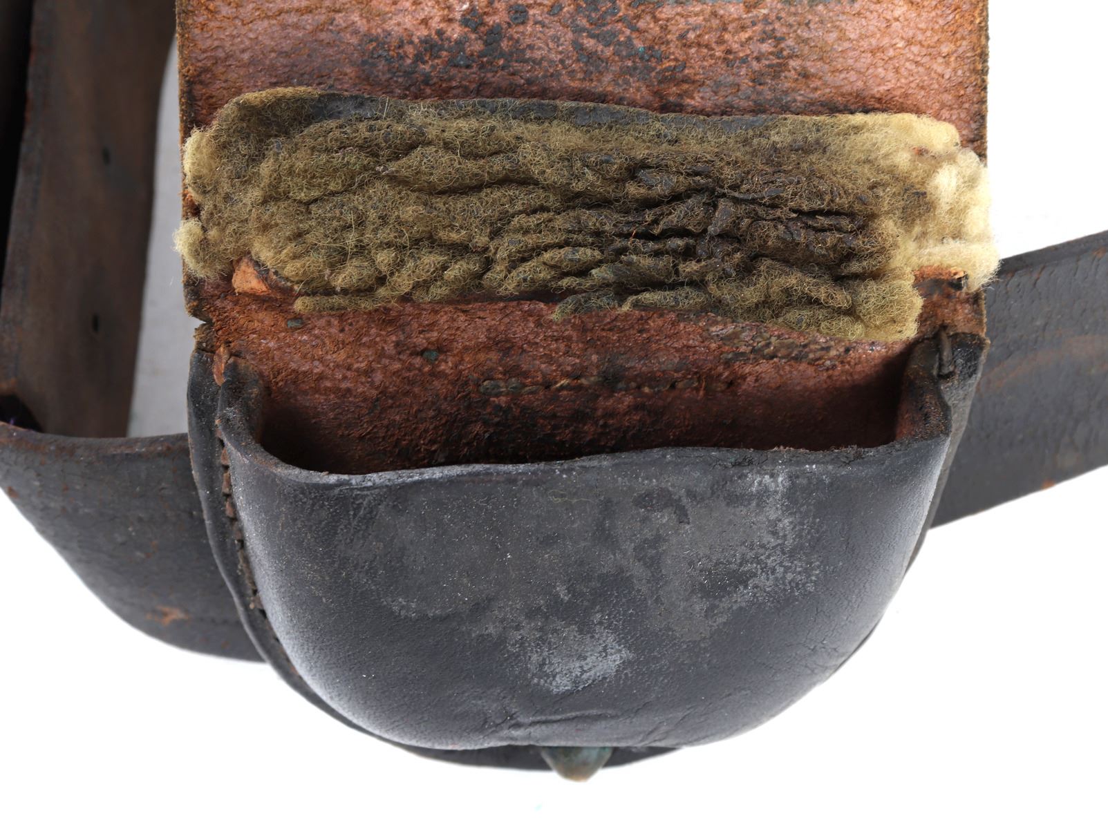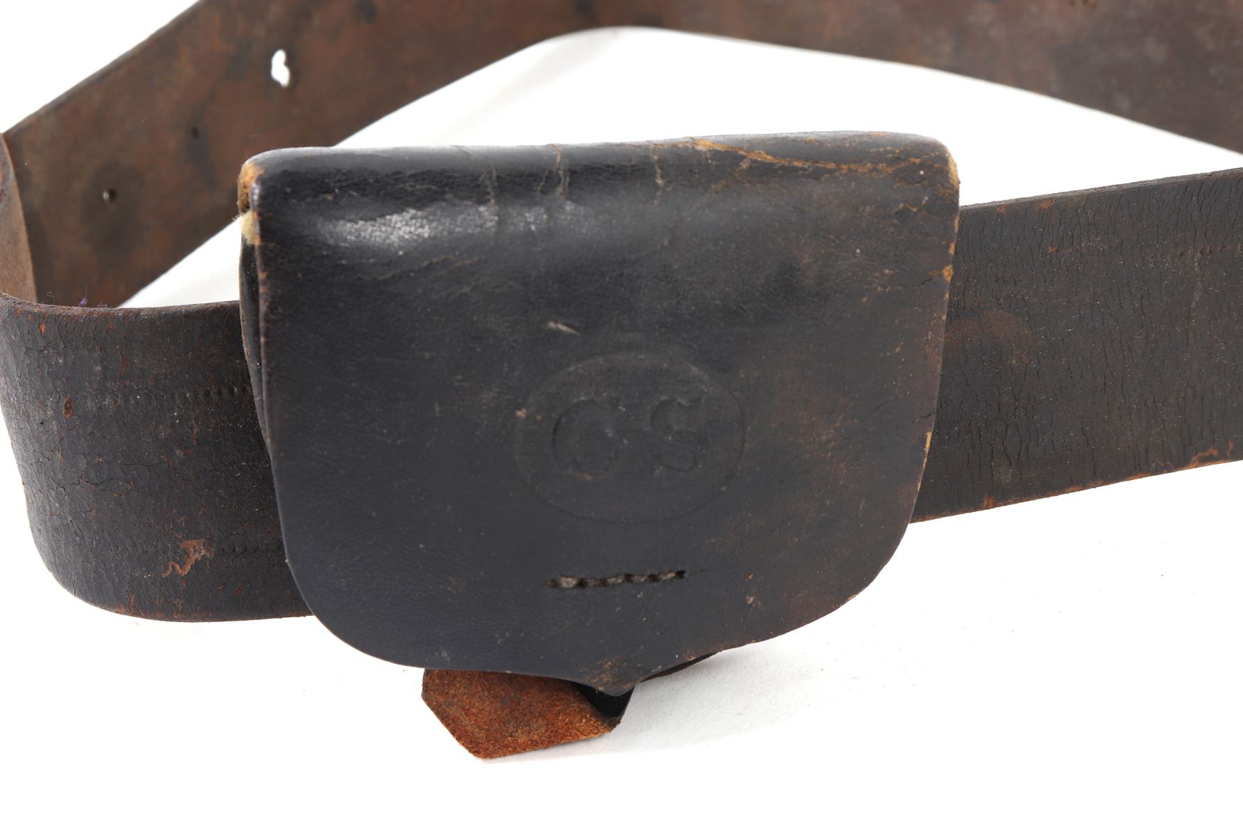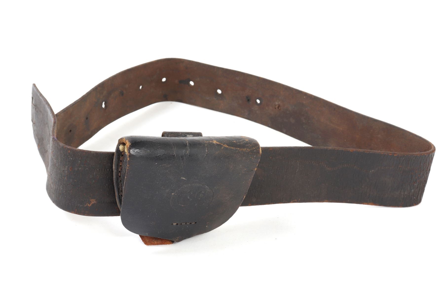 Rare Confederate Civil War "CS" for Confederate States pouch and belt in very good condition. The interior of the lid reading an old arsental marking. Size Pouch 3 7/8" W, Belt 38" L. Provenance: Ex-Southern California Collection