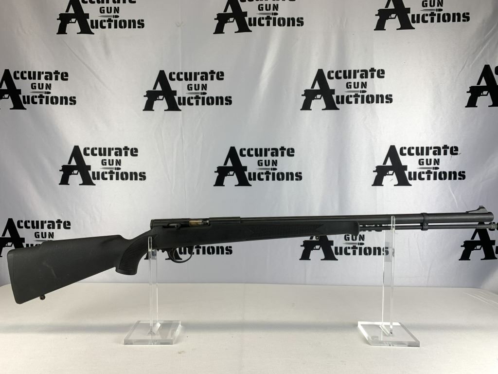 With an overall length of 42", this blackpowder rifle comes with the ram rod, a static ramp front sight, a polymer frame that is still is great condition and sling swivel attachments. Although it is a muzzle