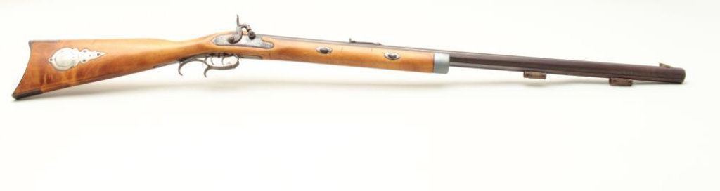 31" barrel, set trigger, brown patina. Rifle is very good overall, missing the ram rod. (Exempt) Est. $125-250