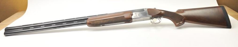 Connecticut Valley Classic Sporter Over/Under shotgun, 12 gauge, Serial #CVC-547. The shotgun is as new in an All-American case by Nasco Aluminum Company. The shotgun has 30” barrels with a full-length ventilated ribchoked cylinder on both barrels with chambers that will accept both 2 ¾” and 3” shells. The receiver is coin finished with 30-40% scroll engraving and a single trigger. The finely checkered wood stock is in excellentcondition with a solid rubber recoil pad providing a 14 ½” LOP. The bores are good, the action is crisp and the markings are sharp. Est.: $600-$1,200. (Modern).