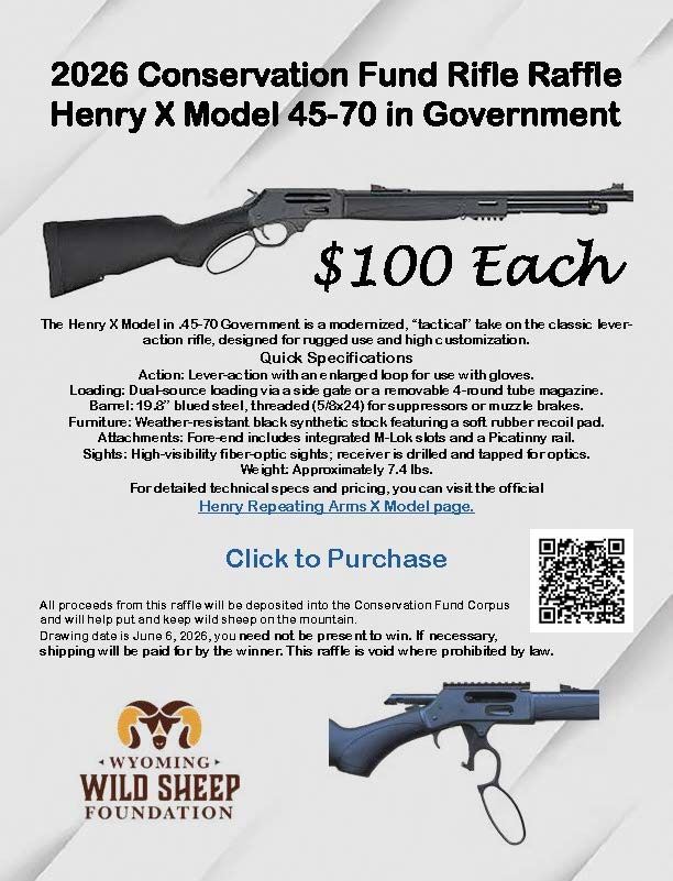 The Wyoming Wild Sheep Foundation (WY-WSF) is organized to put and keep wild sheep on the mountain by generating funds by auctioning items donated by individuals and/or companies.
