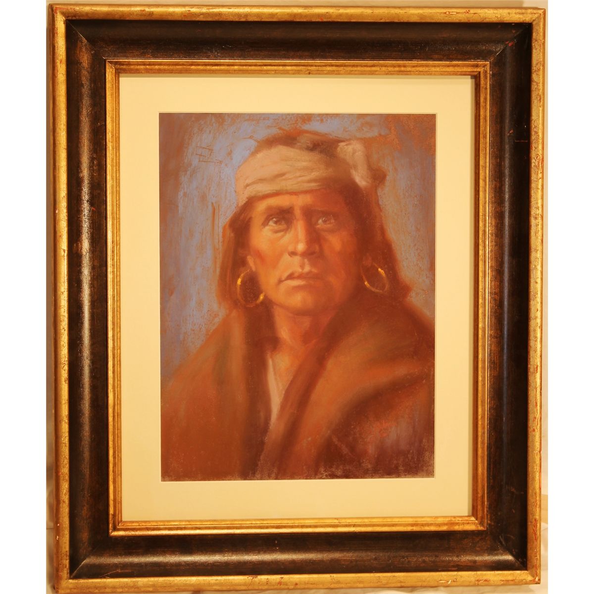 Contemporary Framed Pastel of Geronimo