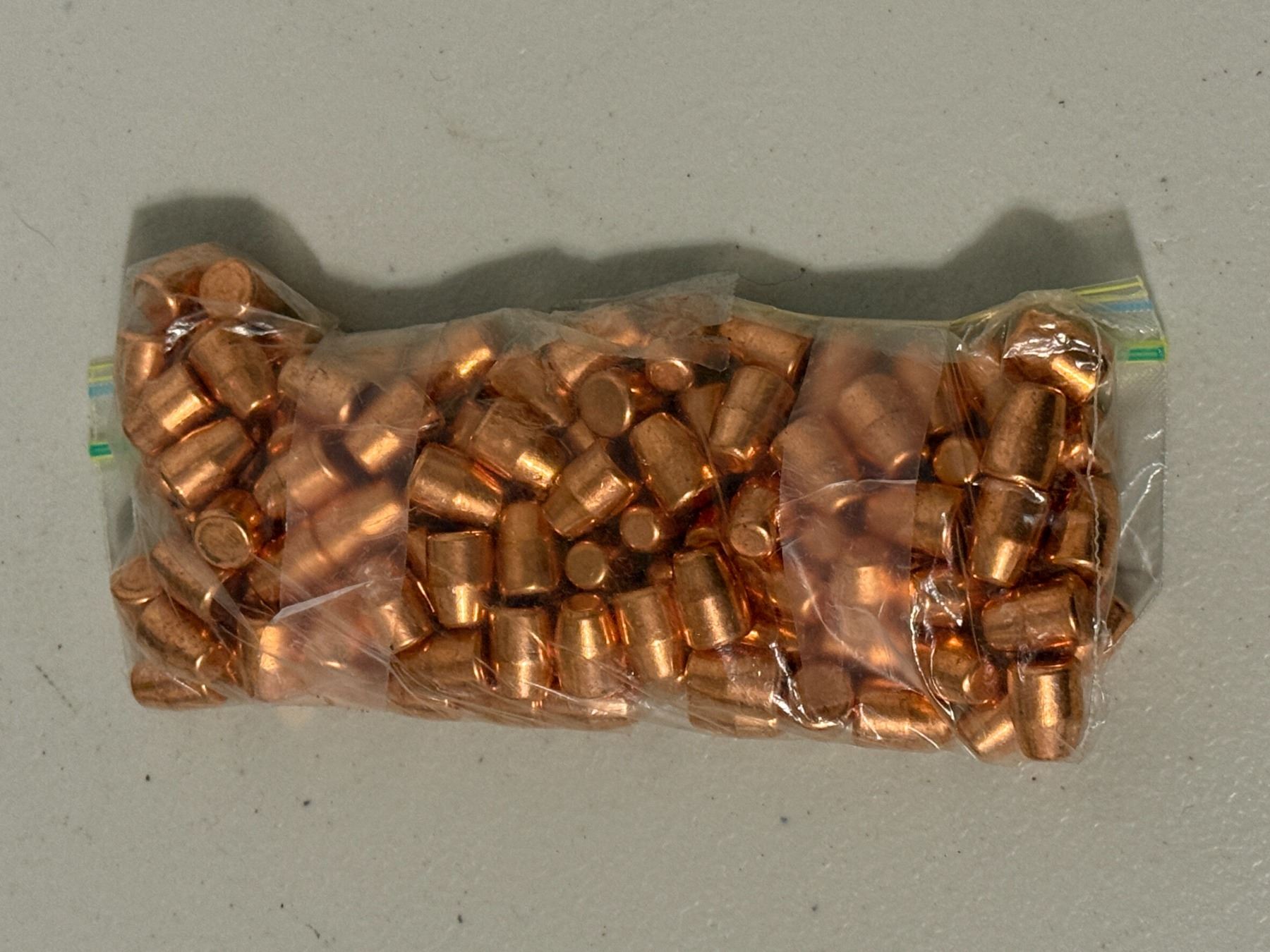 Lot of approximately 80 copper-colored bullets/projectiles. Caliber unspecified. As pictured. Sold as-is.