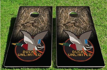 24x48 Full Size Regulation Cornhole Game Heavy-duty all wood construction. HD digital print of the DU Vintage logo the Mossy Oak/DU Blades Camo pattern. Coordinating bags Made in the USA.
