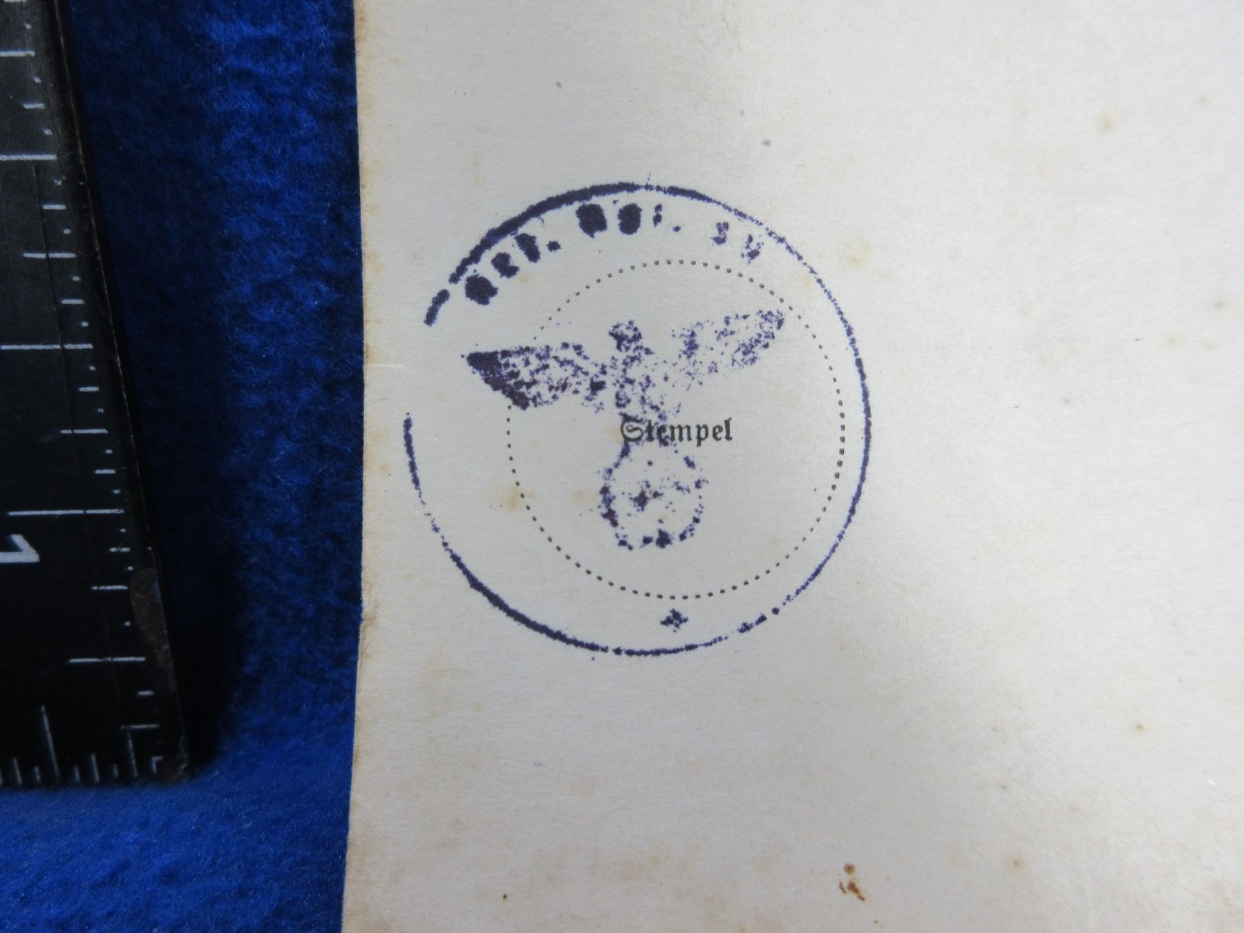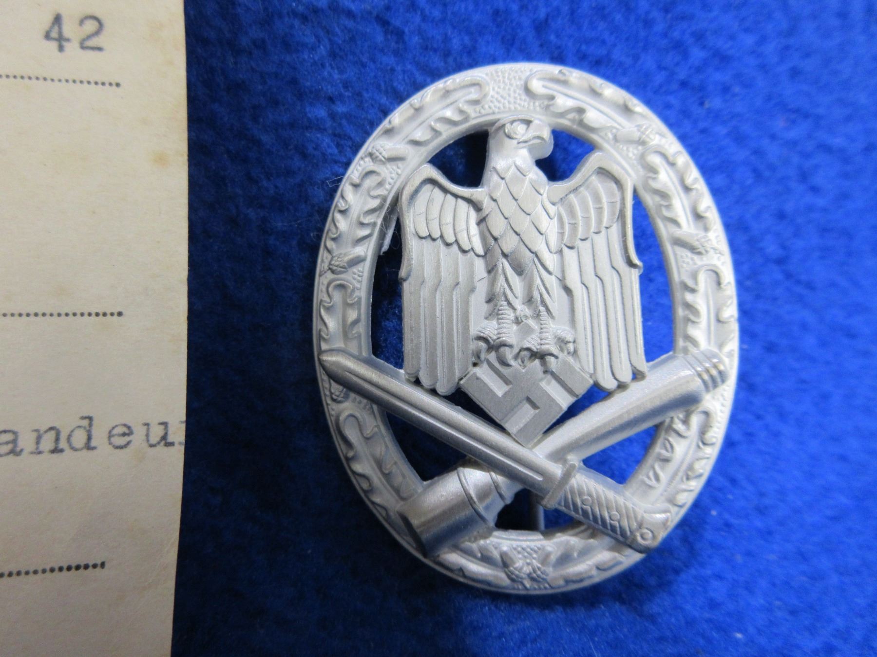 Corporal Max Wollenberg Original Certificate (WWII German Staff II Corporal in the Artillery Regiment, Signed by Colonel and Regiments Commander, Dated Nov 11, 1942 in the Field) and Replica Medal (WWII German General Assault Badge)