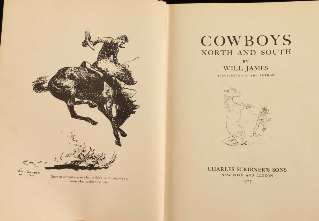 First edition copy of the 1925 book "Cowboys North and South" by Will James published by Charles Scribner's Sons. Hardcover book in very good condition. Includes dust cover.