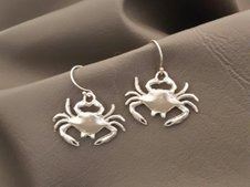 Sterling silver crab pendant comes with an 18", 1.5mm black leather cord with a lobster clasp. The crabs are 3/4" x 1 1/4"