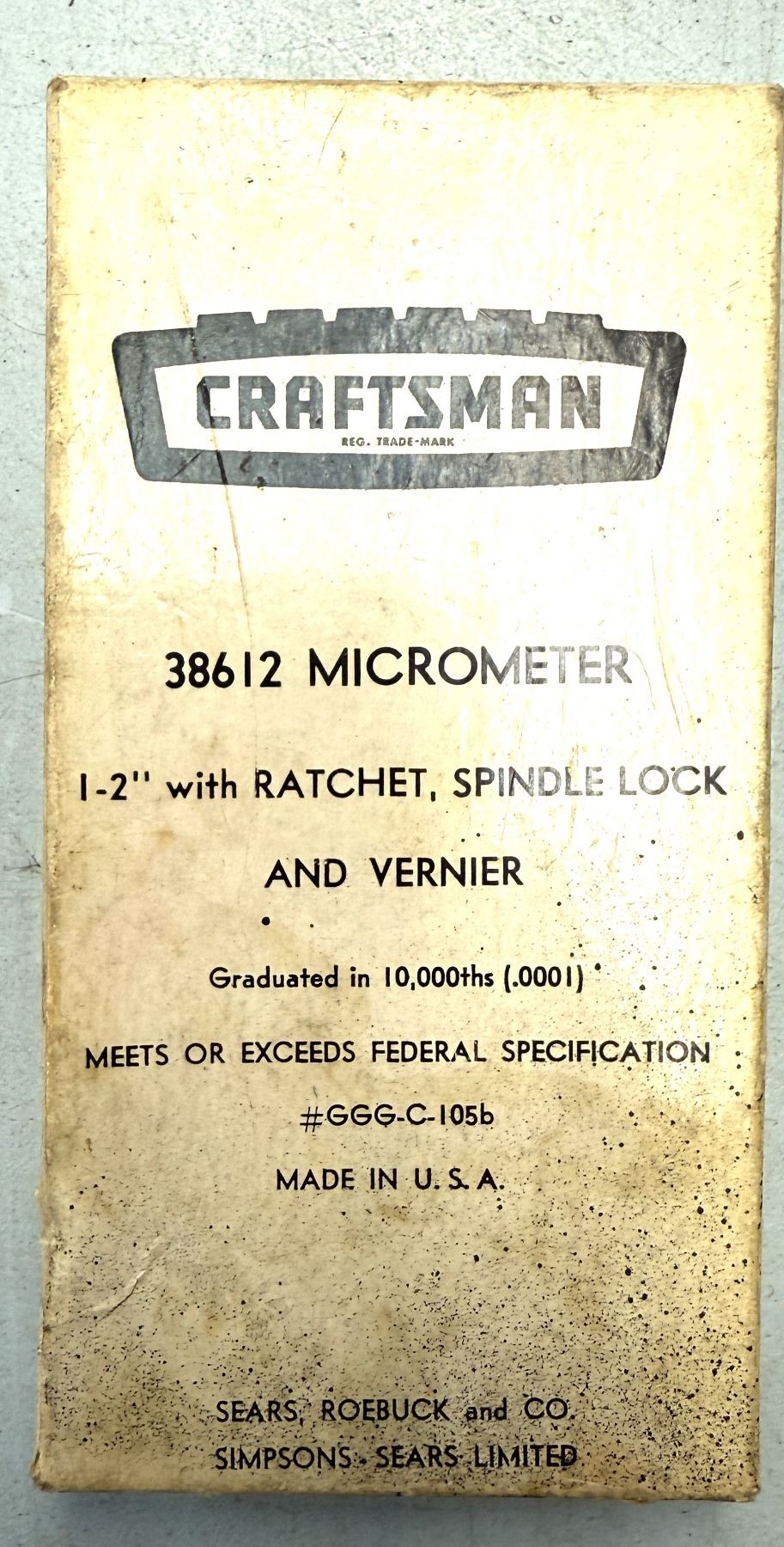 Craftsman Micrometer 1 -2 inch Made in USA