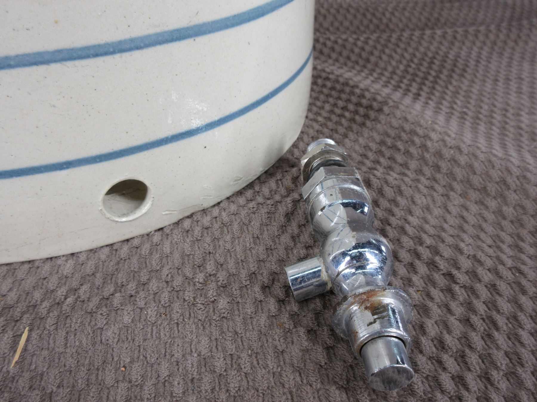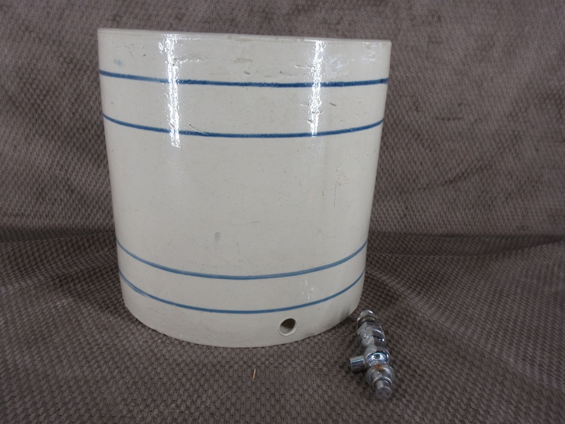 Crock with Blue Stripes, Hole and Spiggot - no cracks