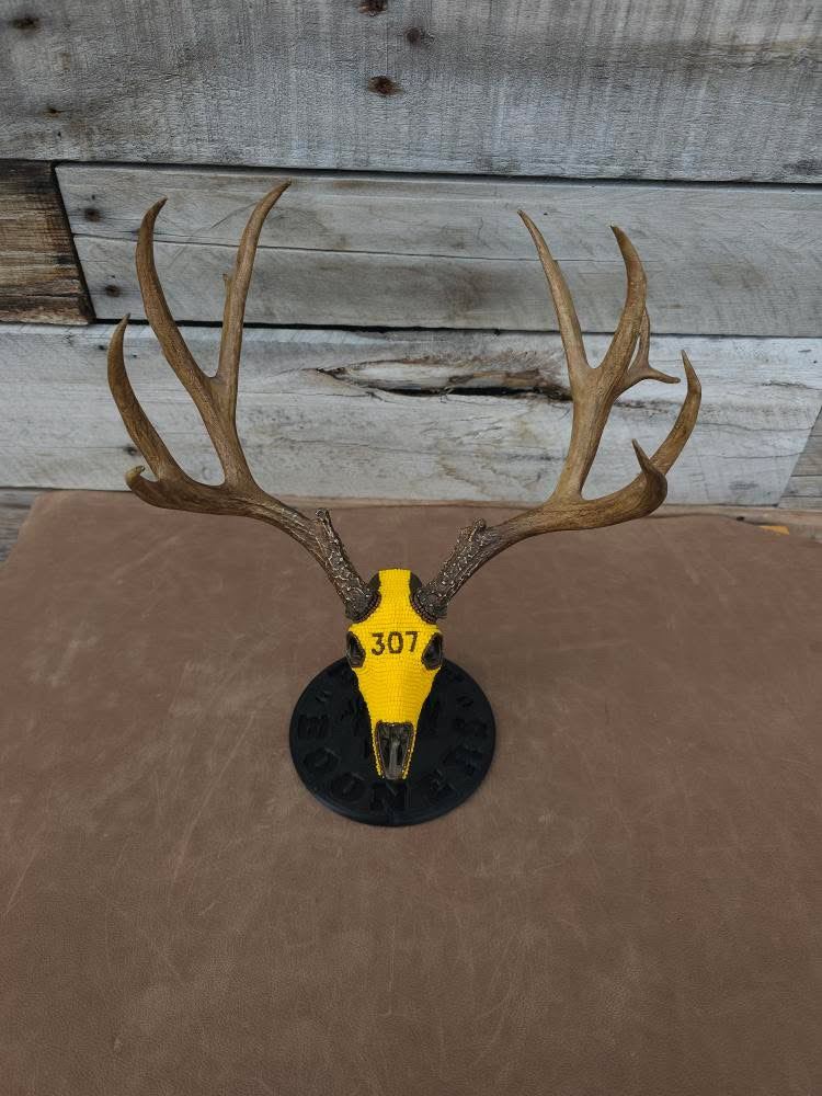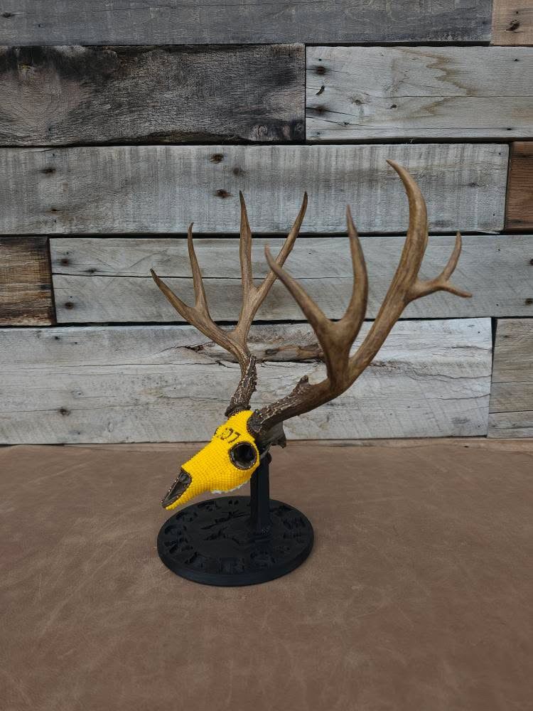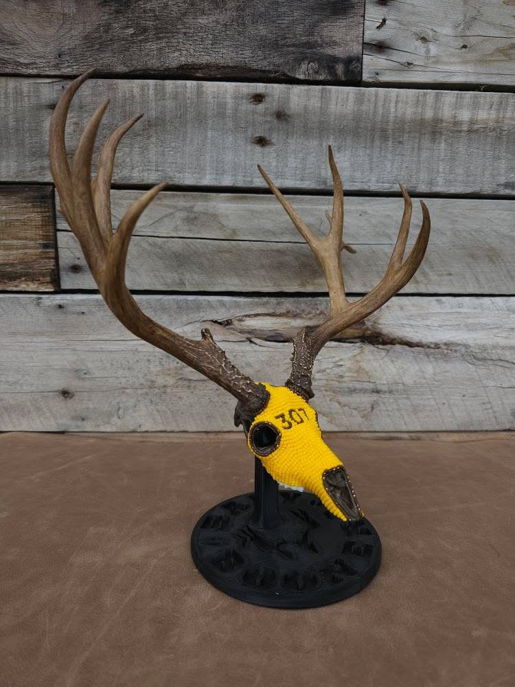 A one-of-kind piece. The Baby Booner mule deer euro is hand beaded by Western Skies Skulls and Jewelry. Laura is very talented with all her work and turns any euro skull into a beautiful piece of art. Another great item to add to your collection of home decor.