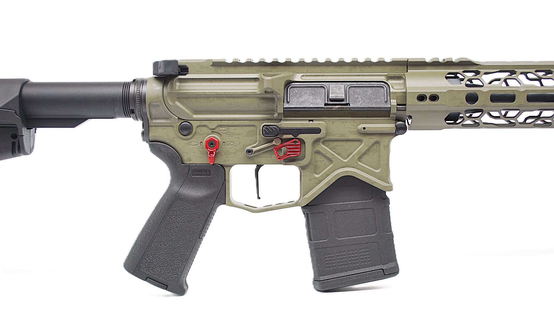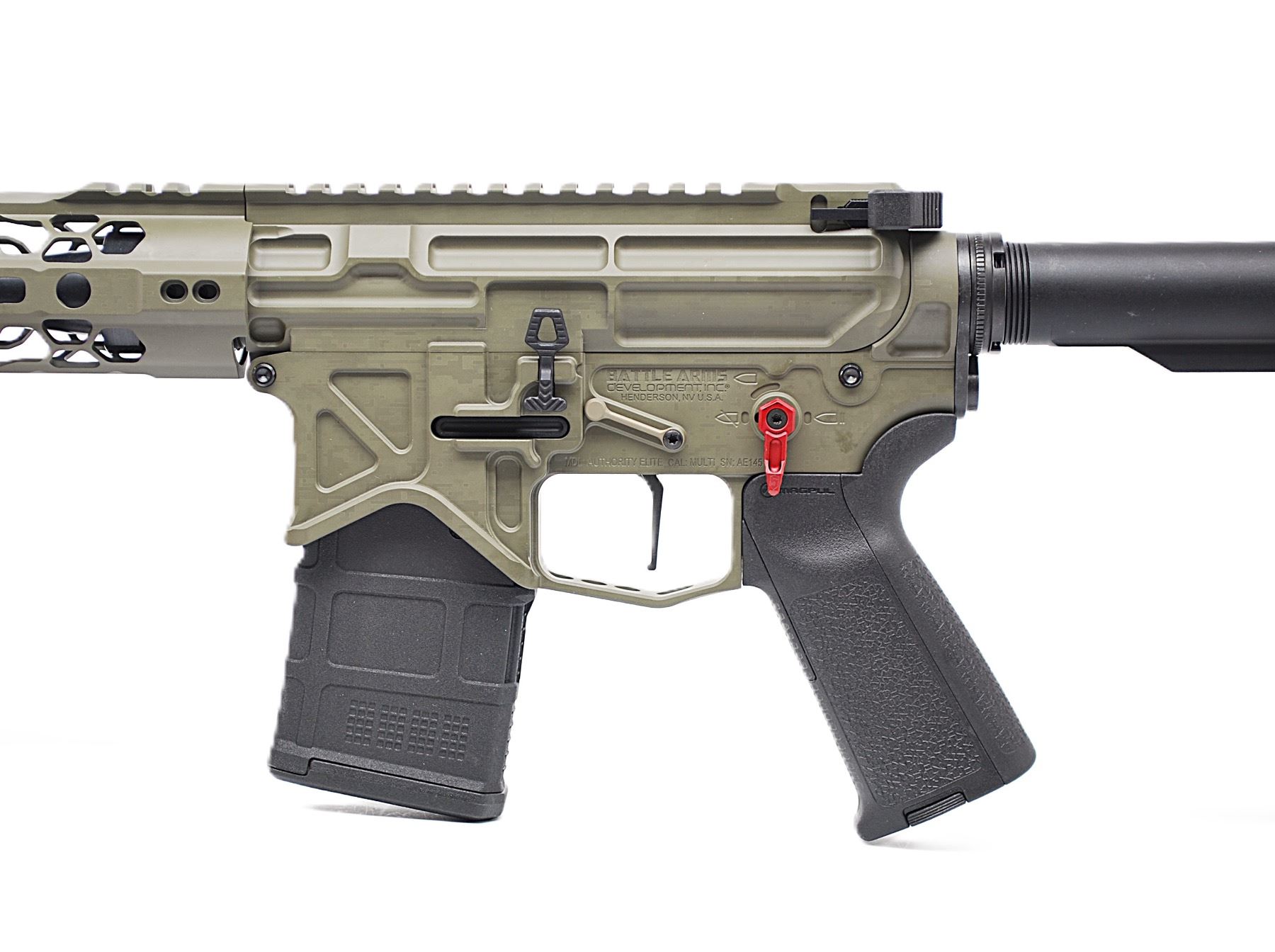 Own a Hendershot’s custom-built AR-15 chambered in 6mm ARC—designed for precision and performance. This rifle features a Battle Arms billet lightweight upper and lower, a Wilson Combat 18" fluted barrel for exceptional accuracy, and a crisp TriggerTech trigger for a clean, consistent break. Finished in custom Cerakote camo, it’s as striking as it is capable. Whether on the range or in the field, this one-of-a-kind build delivers reliability, balance, and standout craftsmanship.