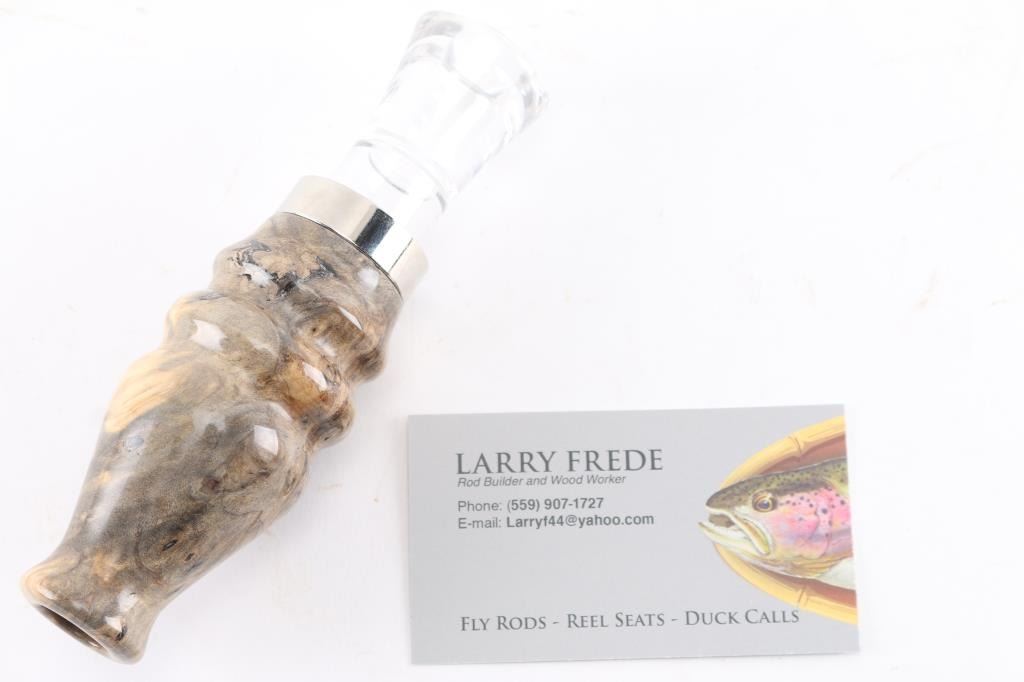 Reed is from Echo Calls Canadian Honker. Wood is California Buckeye, stabilized, with bright nickel band.