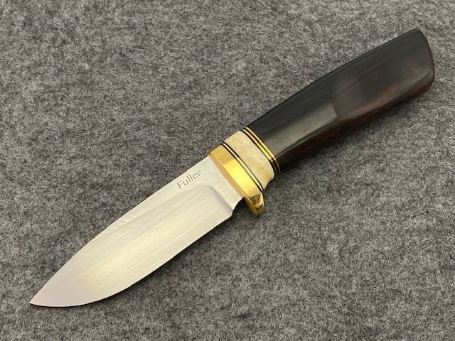 One of a kind fixed blade knife by South African knifemaker CW Fuller. Bronze guard with giraffe one and African Ebony wood sculpted handle. Donated by; CW Fuller Category: Equipment