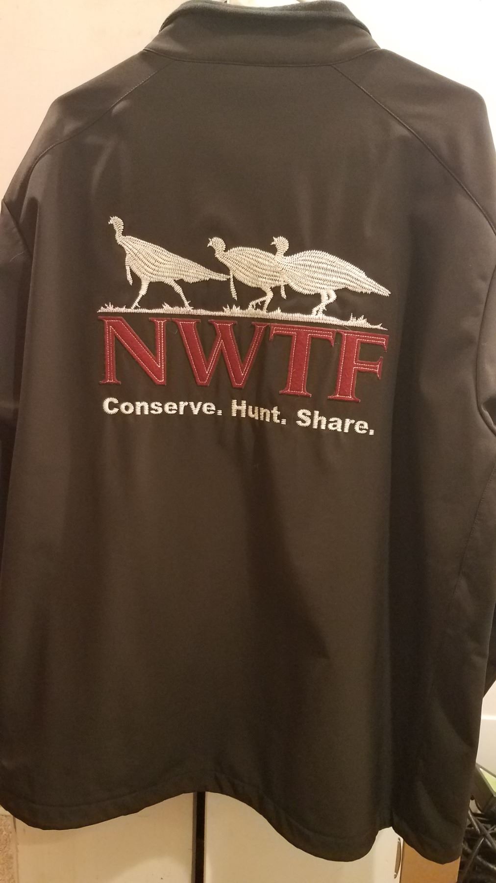 Custom made embroidered mid-weight NWTF zip-up jacket in 2XL. Purchased at NWTF convention a few years back. Like new without tags. Very nice, rare NWTF apparel item.