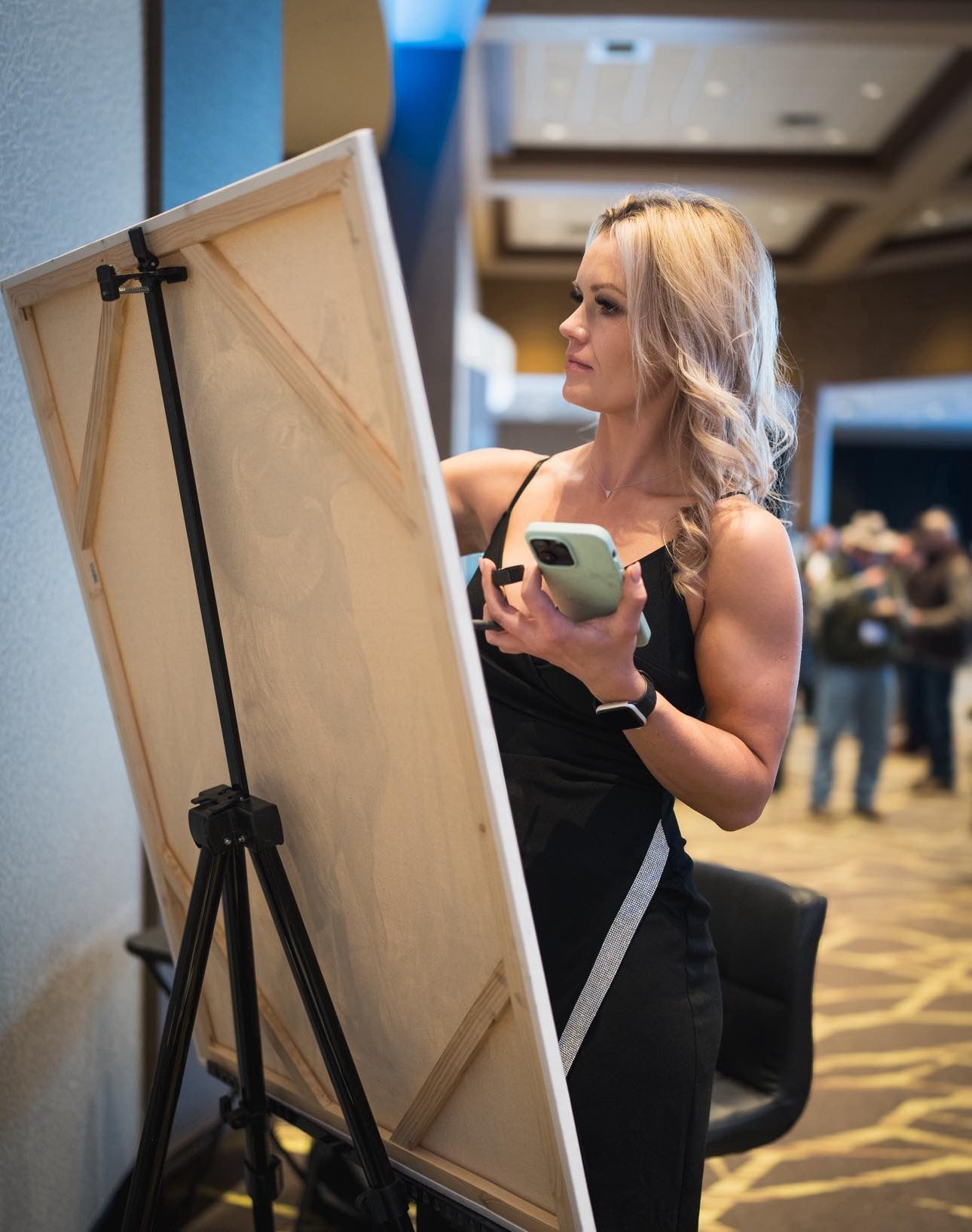 Elena Johnson, a charcoal artist from Idaho Falls, will finish this piece live at our banquet, in front of the crowd. This bugling bull will go great in any room, home, or office.