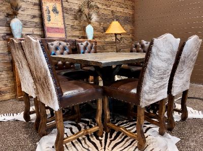 Ideal for a dining room, trophy space, or home bar, this one-of-a-kind set reflects Bison Creek Interiors’ dedication to quality, comfort, and craftsmanship—built custom from frame to finish for those who value distinction in every detail.