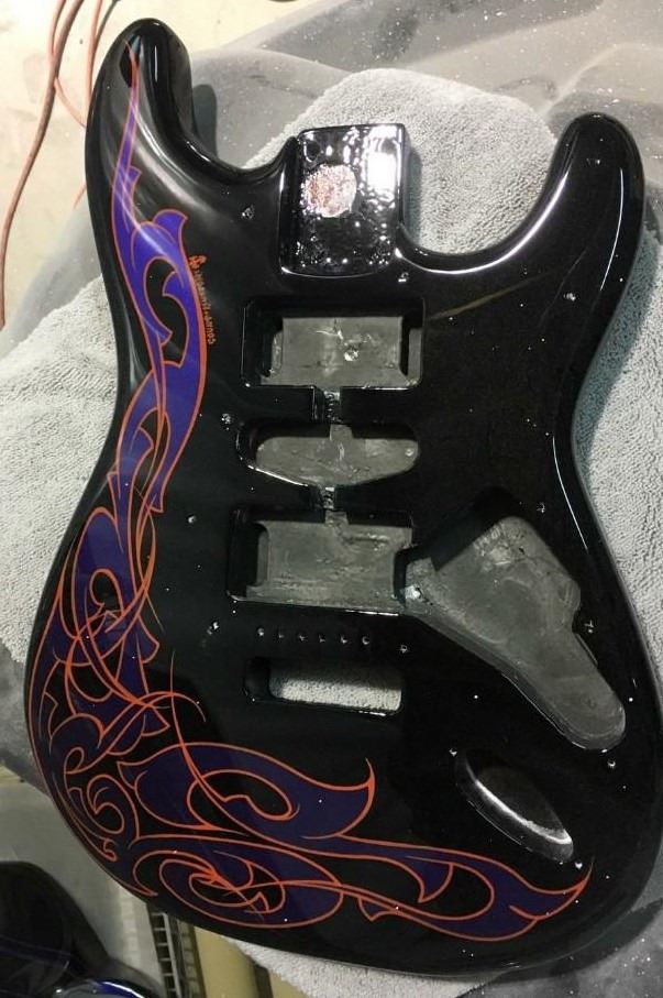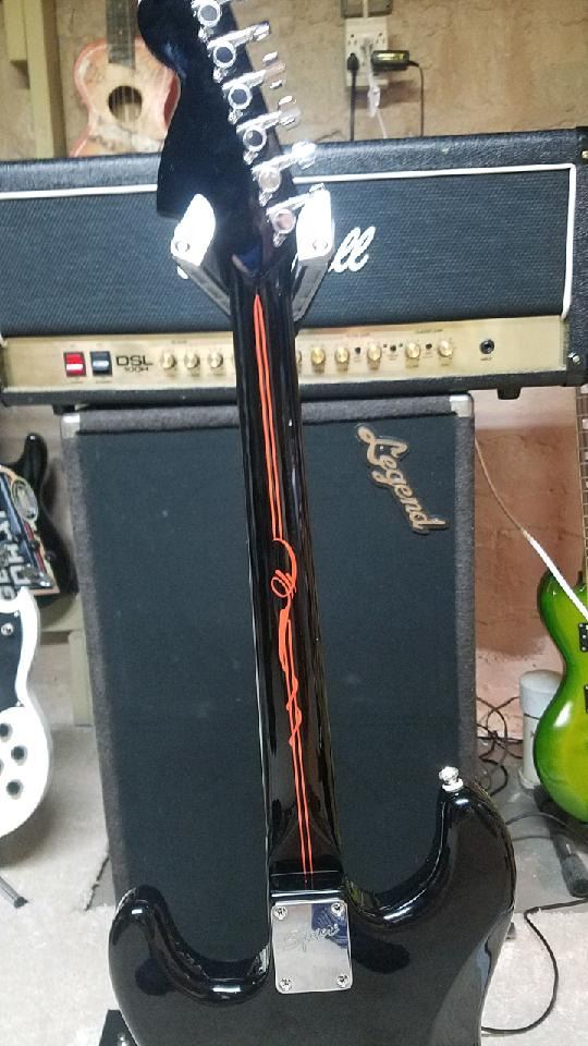 This guitar is a mint condition 1980 Squire Stratocaster that has been completly reconditioned and upgraded. The neck has had a completed with fret leveling and conditioning. Installed are new vintage wound pickups and wiring and a complete professional setup for fast easy playing. This is a one of kind custom guitar put together by local guitar specialist Mark Zikosky. The paint on this guitar was done by Ryan Evans and Horny Mike of Count's Kustoms making it not only a playing dream but a one of kind custom guitar painted by these world class painters.