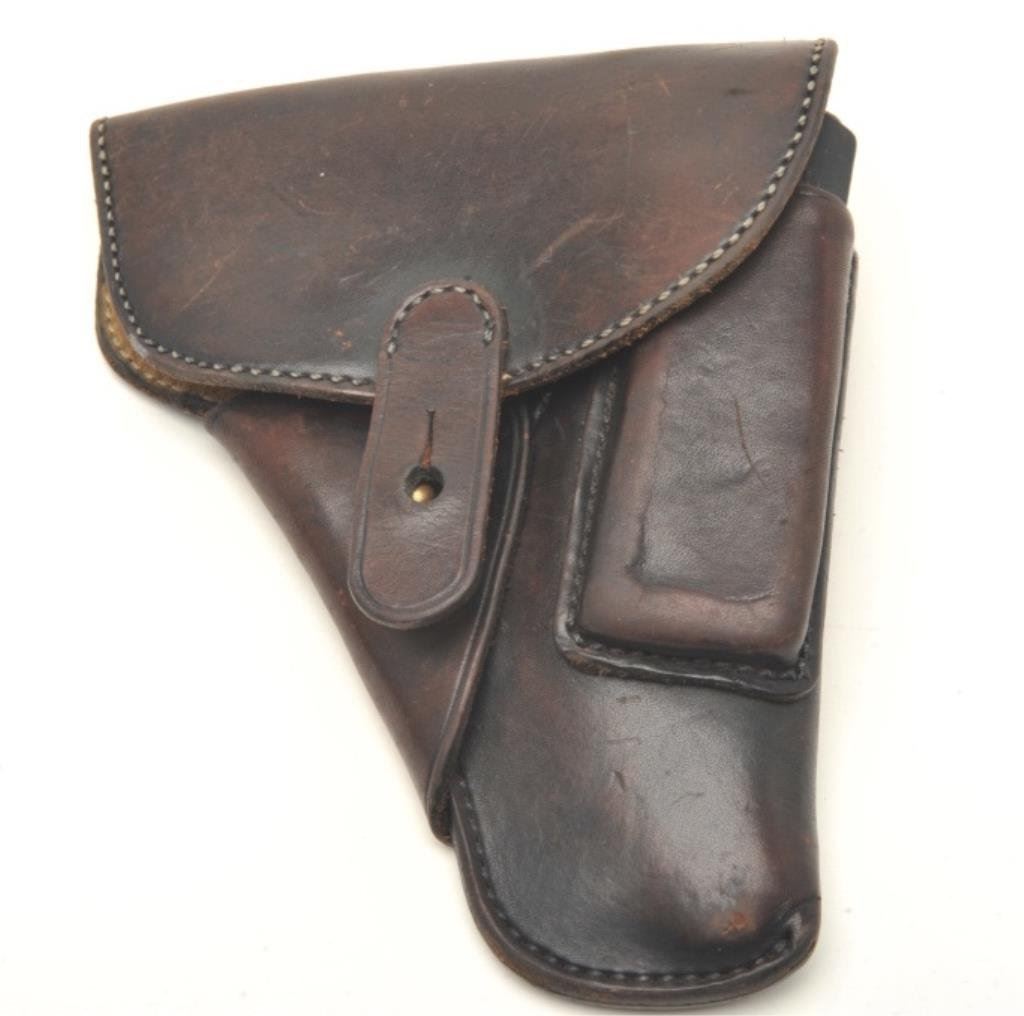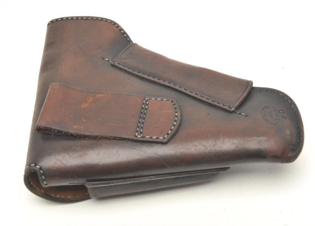 .32 caliber, 3.5” barrel, blued finish, brown checkered plastic grips, S/N 106720, in overall very good to fine condition showing considerable original blue, fine bore, crisp action and fine grips; accompanied by a brown leather flap holster in very good condition. (Modern/PPT). Est.: $300-$600.