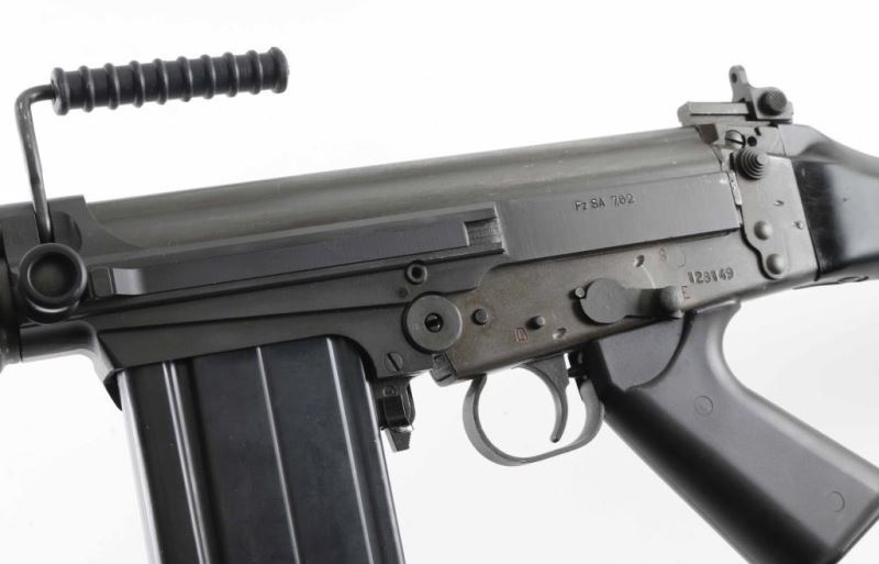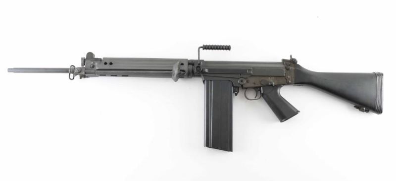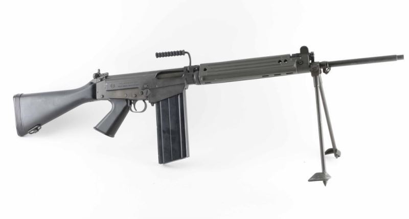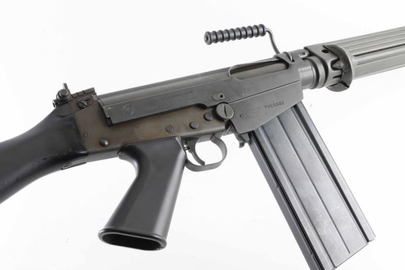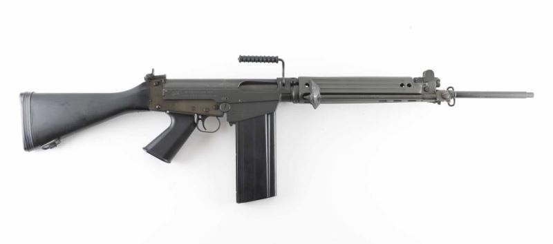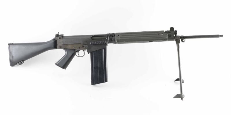 Semiautomatic rifle manufactured using a Brazilian made (Imbel) receiver and Austrian (STG-58) parts. Features parkerized finish, black polymer furniture, sheet metal handguard, 20" barrel, muzzle has reduced diameter (threads removed), adjustable sights with protected post front & sliding peep rear with range settings, left side charging handle, manual safety, carry handle, folding bipod, sling swivels, uses metric FAL magazines. Bore is very good condition, appears hard chrome lined. Retains 90% finish with scratches & handling marks. Polymer furniture is very good condition. Includes (1) 30 round "DSARMS" marked magazine. Condition is NRA Very Good++ *** Modern Firearm ***
