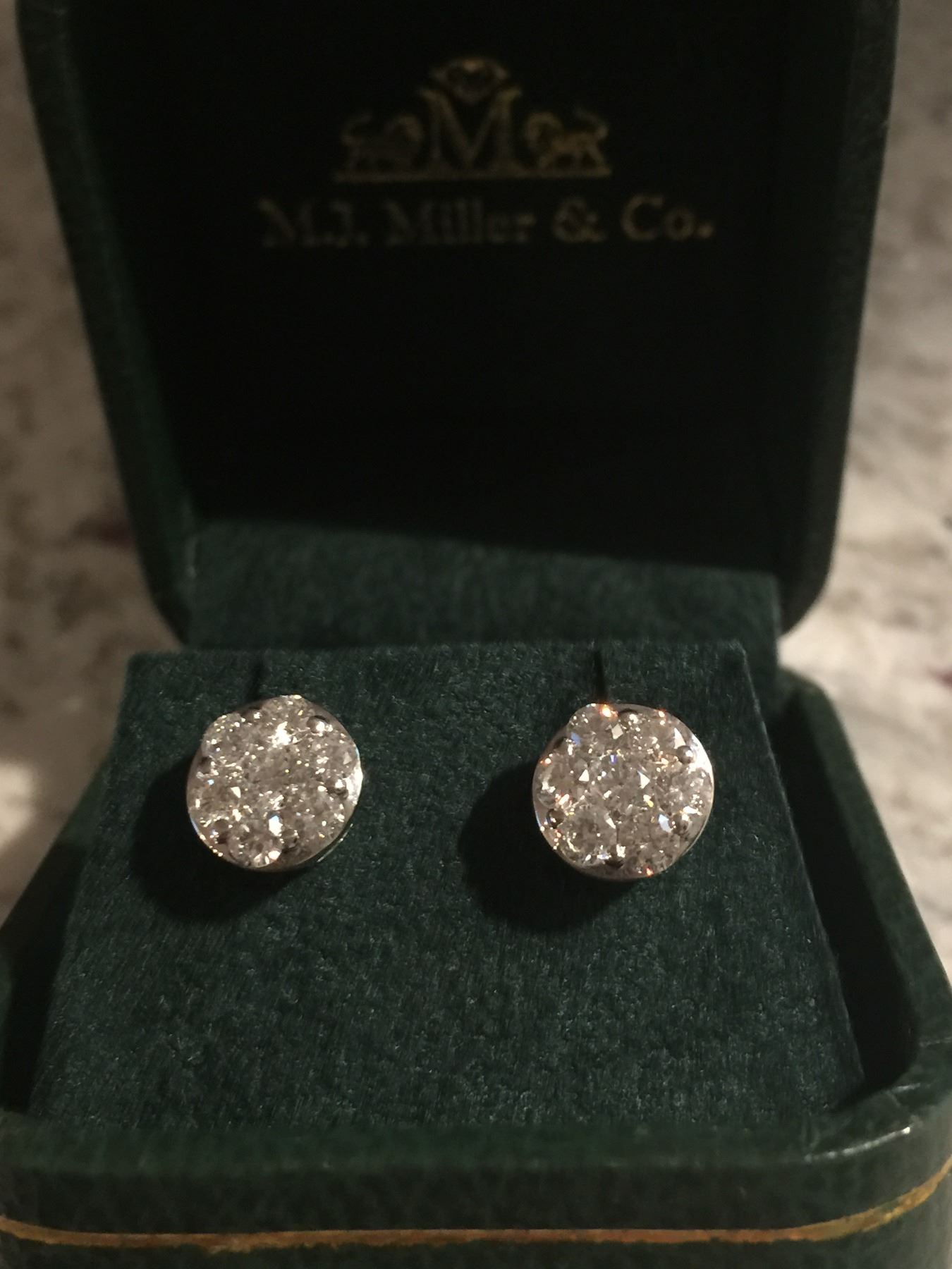 Perfect to wear to a formal event or with that little black cocktail dress is this beautiful pair of round cluster diamond earrings. The seven round brilliant-cut diamonds in each earring simply dazzle and sparkle from every angle, and are sure to turn everyone’s head! With a total diamond weight of 1.20ct., G-H Color diamonds have a SI-1 to SI-2 clarity. They are post pierced and have friction style backs. Value $3,150.00. SCI thanks M.J. Miller & Co. for this 100% donation.