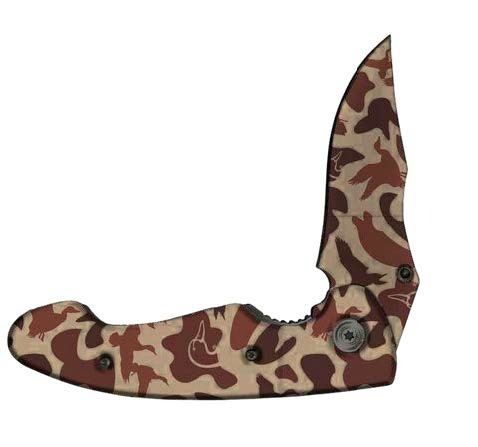 Liner lock folding knife. Features the DU Old School Camo pattern. Features a carrying case with the duckhead logo.
