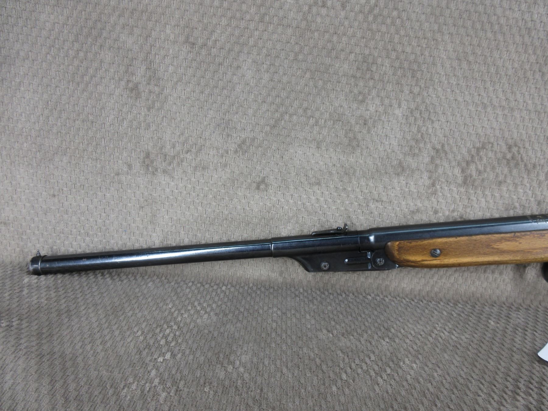 Daisy Model D160 in .177 Caliber. This break action pellet rifle was made approximately the 1960's and was a low power kids gun. This rifle appears complete and works as I had to shot it. Stock has been refinished and the bluing is good to very good condition.