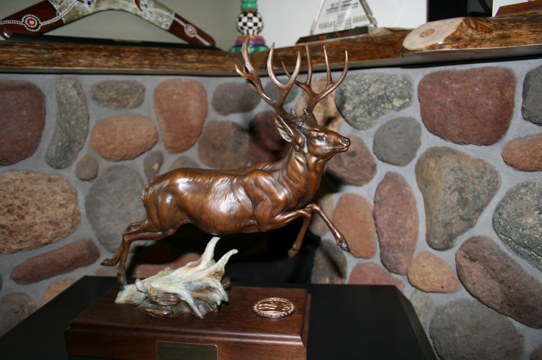 The David A. Arthur Memorial Bronze is a 1.5 x life size Mule Deer. Successful bidder will have their name engraved on a plaque placed on the base of the bronze. Successful bidder will also receive a maquette of the Memorial Bronze for display at home or office. Only 30 plaques will be sold making this a special auction item for many years to come.