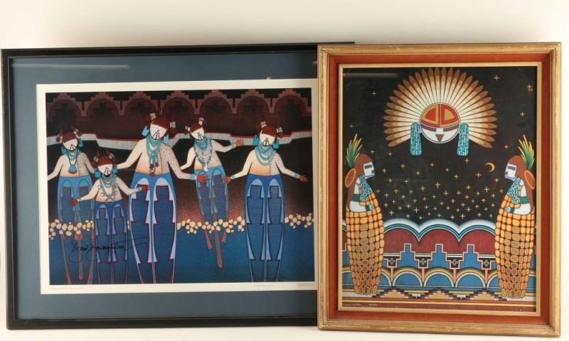 Two Larger Signed prints: (no title) 23" X 16" Framed, "Tasap-Manas (Navajo Girls)", 23" X 29" Framed.