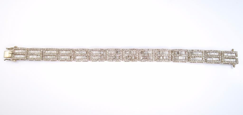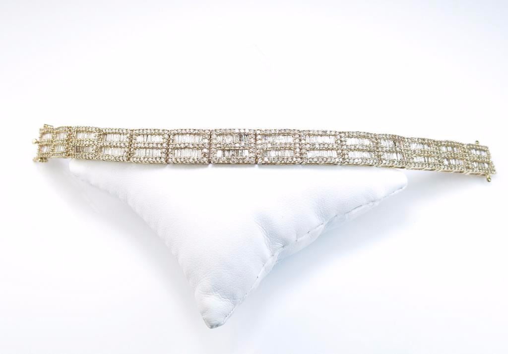 Featuring over 686 round and baguette cut diamonds weighing approx. 15.00- 20.00 carats of I/J/K colors and SI/I clarity set in a 10 karat yellow gold setting. Retail $10,000-$15,000 Estimates $4,000-$7,000 Very labor intensive. Reserve $2,000.00