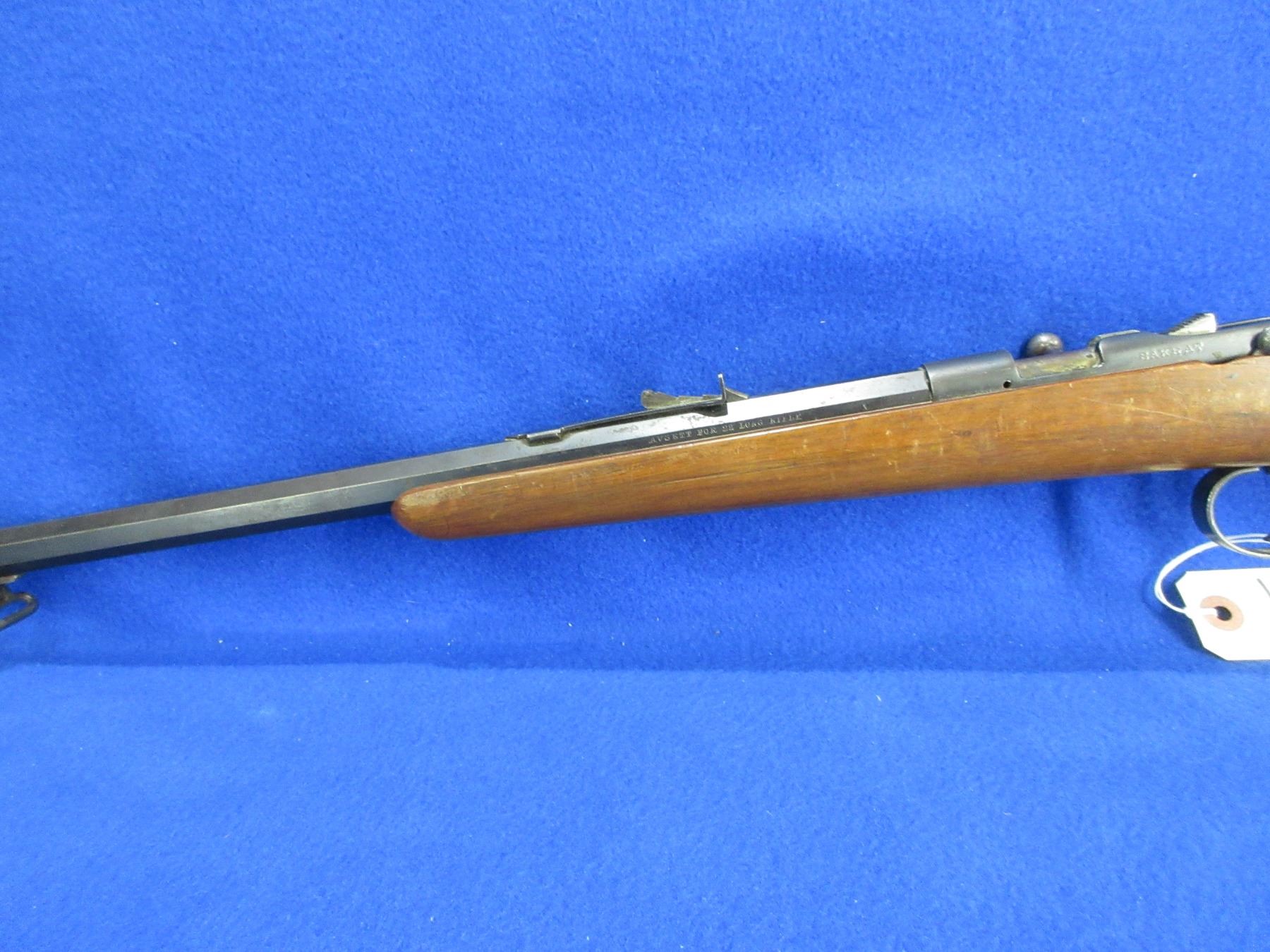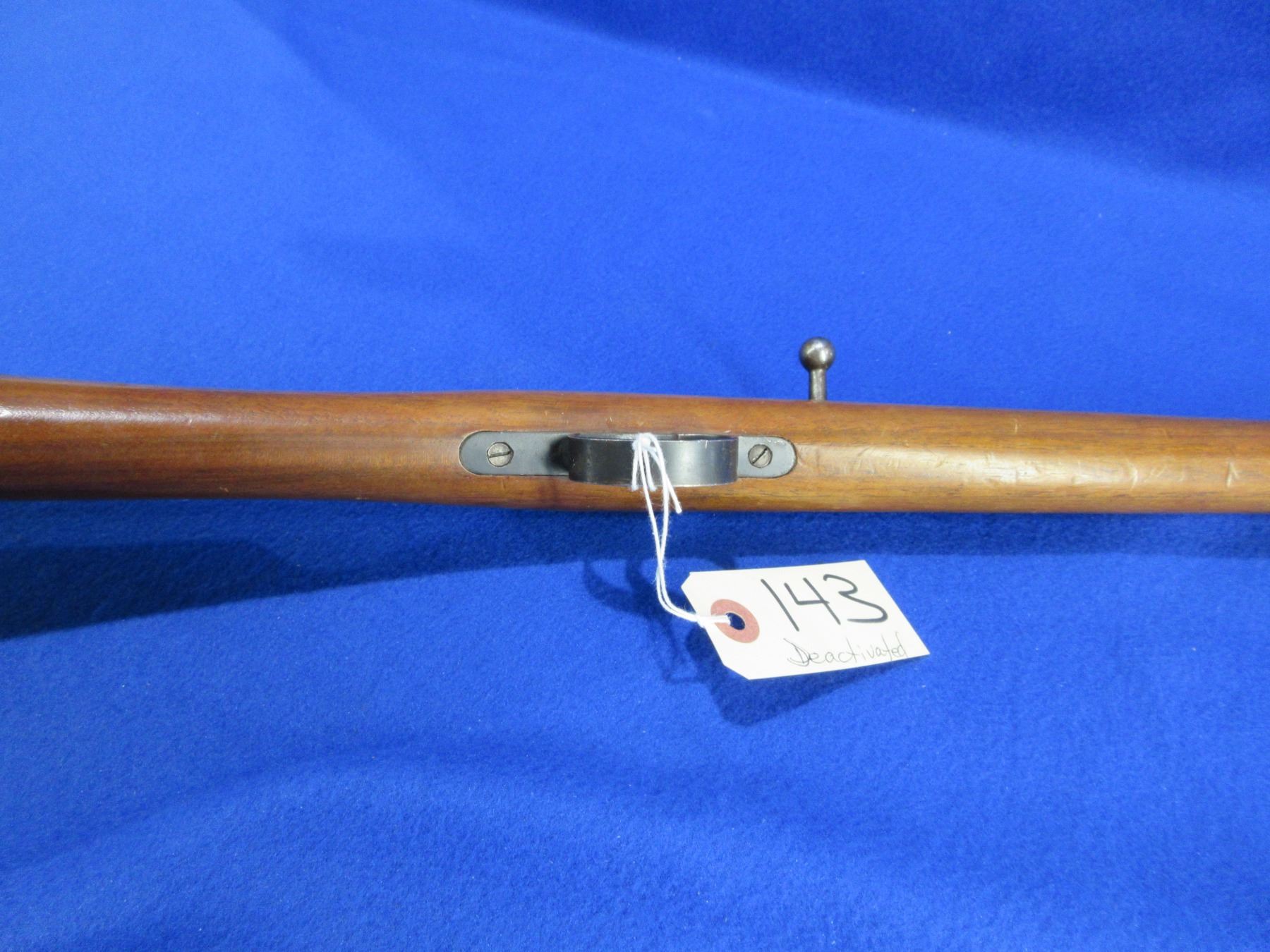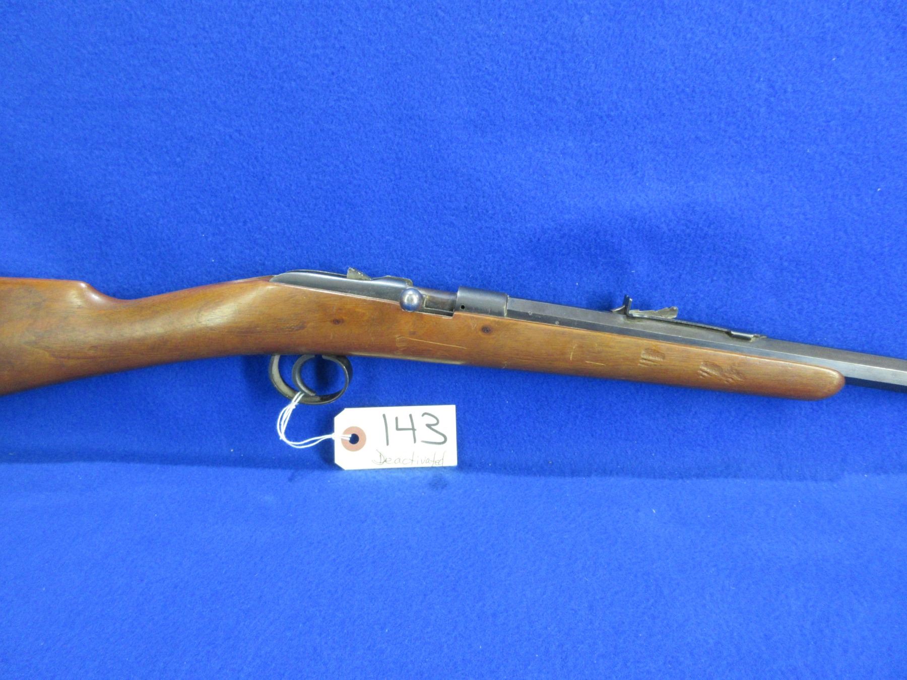 Deactivated - No PAL Required - Husqvarna Sakrat in 22 LR - This deactivated bolt action single shot rifle is in non-working order as the bolt has been welded to the action. Octagonal barrel is 24", rifling is unknown, bluing is fair to good with light pitting , has both sights, stock is good with usgae marks, metal butt plate good, comes with swivels. Ser #46164