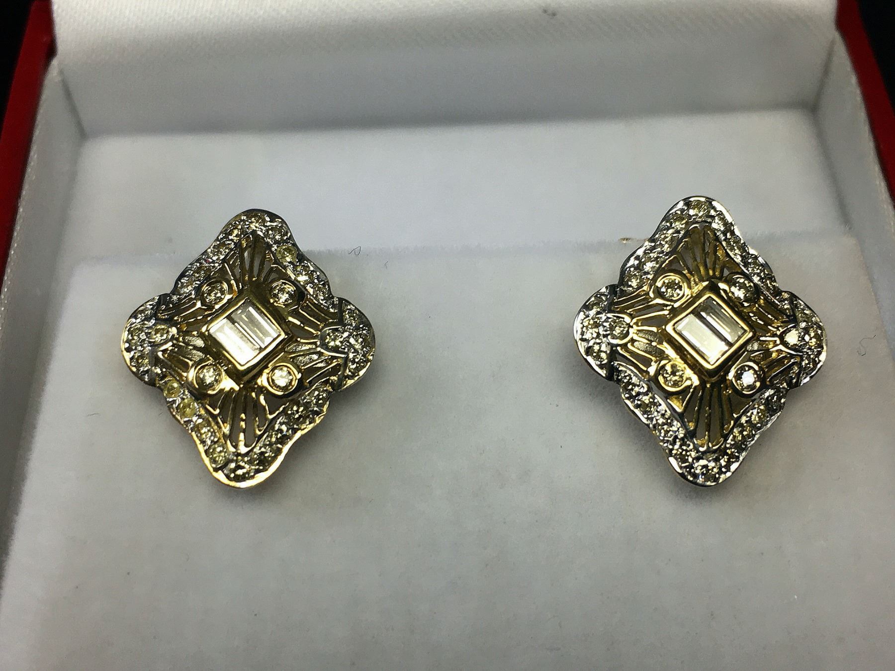 This exquisite pair of sparkling diamond earrings boasts one carat total weight of baguettes and round diamonds. The stones are set in 14 Karat yellow and white gold, with post & clip. Gentlemen, admit it, your lady deserves these. Ladies, you can always use another pair of diamond earrings! Value: $2,000