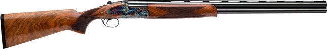 Dickinson Plantation Series over & under shotguns are premium trigger plate mechanism guns with cosmetic side plates. They combine the latest modern CNC technology and CNC-machined lever mainsprings with old-world craftsmanship and attention to detail. Each receiver is machined from a solid billet of moly-chrome steel and finished with genuine bone charcoal case hardening for beauty and durability. These fine guns feature hand oiled Turkish walnut stocks and fore-ends and come complete with five thin-walled chokes.