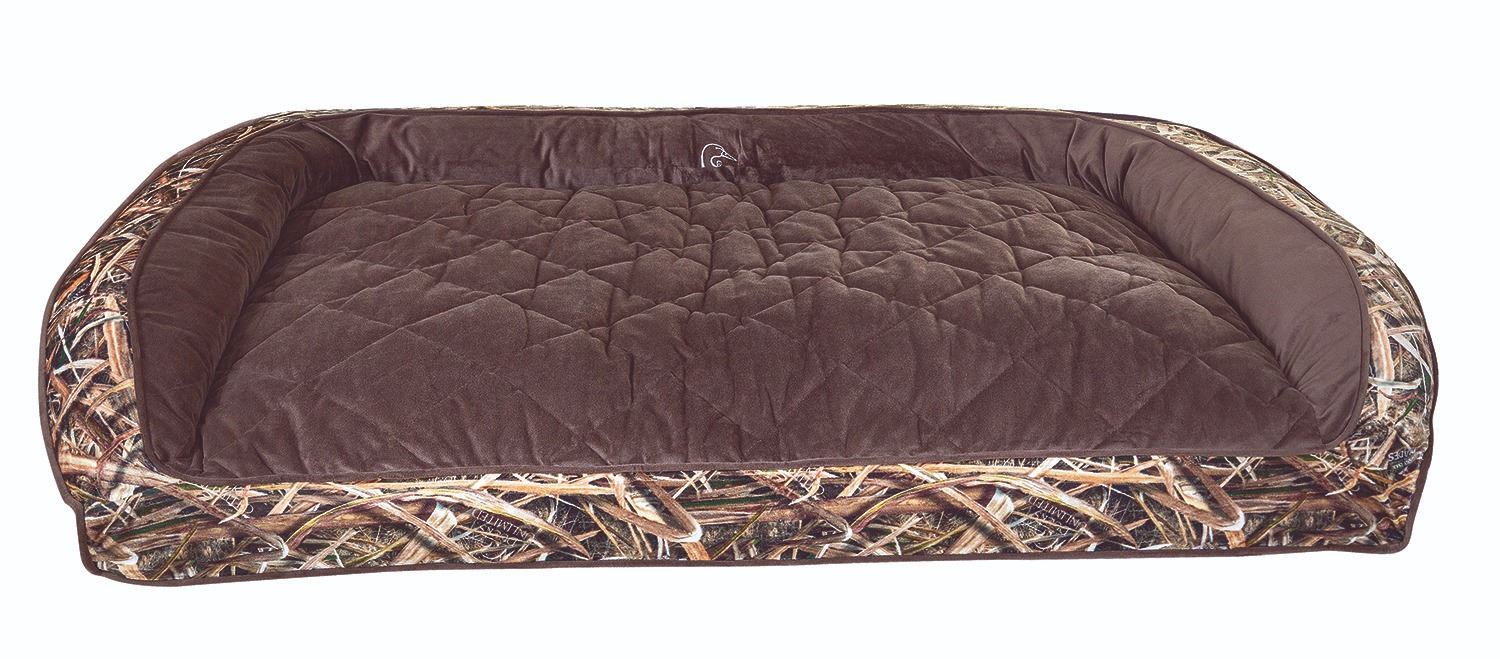 The perfect plush couch-style bed for your dog to enjoy. The brown quilted cover is trimmed in DU Mossy Oak Blades camo and features DU logo embroidery and an anti-slip bottom. The cover is removable and machine washable.