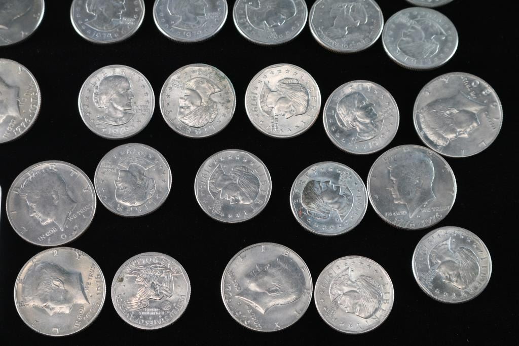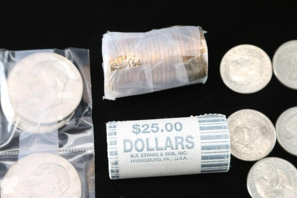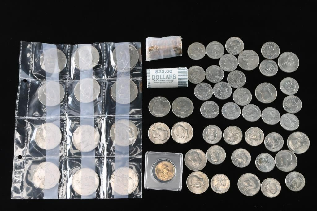 Includes: 14 assorted date "Ike" dollars; 29 assorted date Susan B. Anthony dollars; 23 assorted date presidential dollars; 26 assorted date Sacagawea dollars.