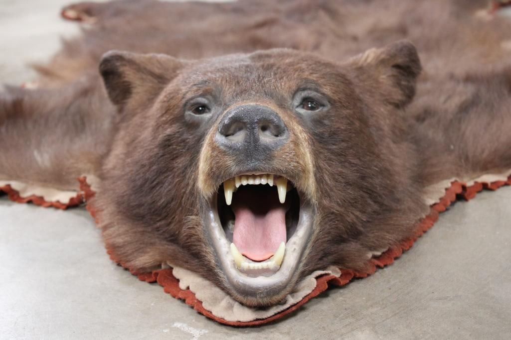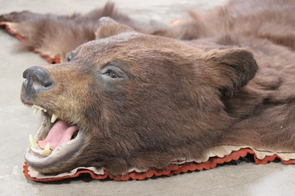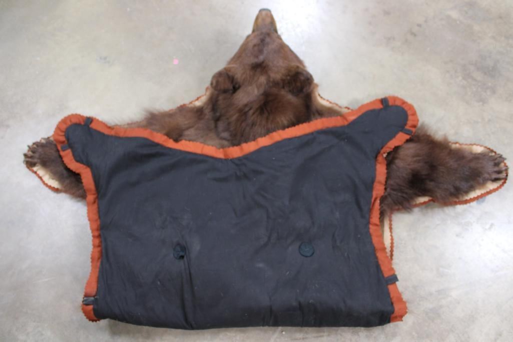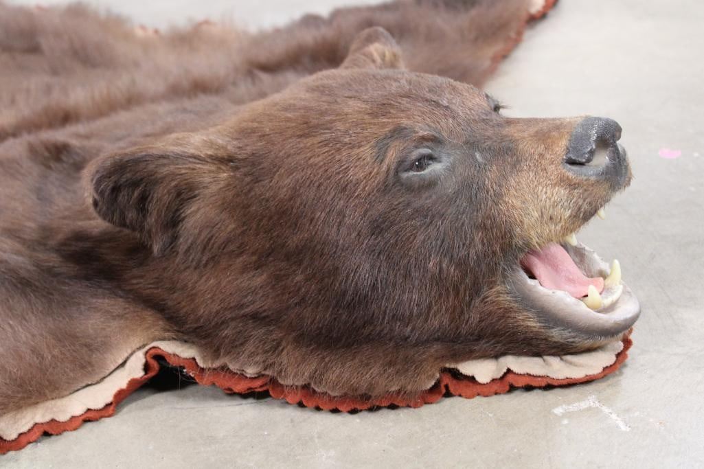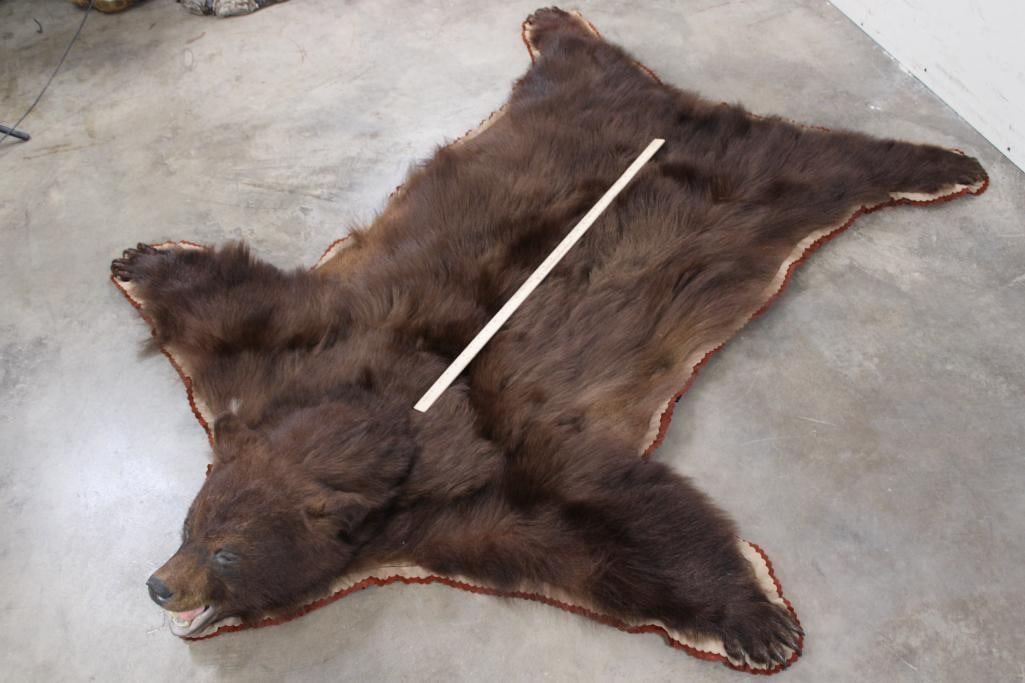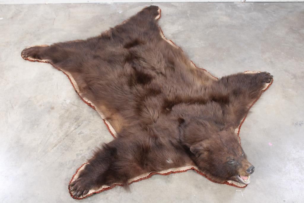 Very Nice Chocolate Phase BLACK BEAR Rug with its Mounted Head. It has All its Claws and is Double Felted. It measures 66" Long from the Nose to the Tail and has a 67" Wingspan. TAXIDERMY