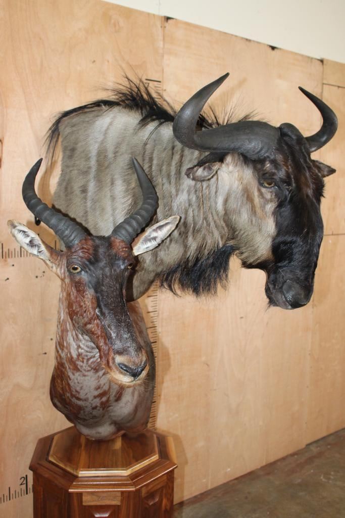 Double Pedestal BLUE WILDEBEEST and TSESSEBE Mount