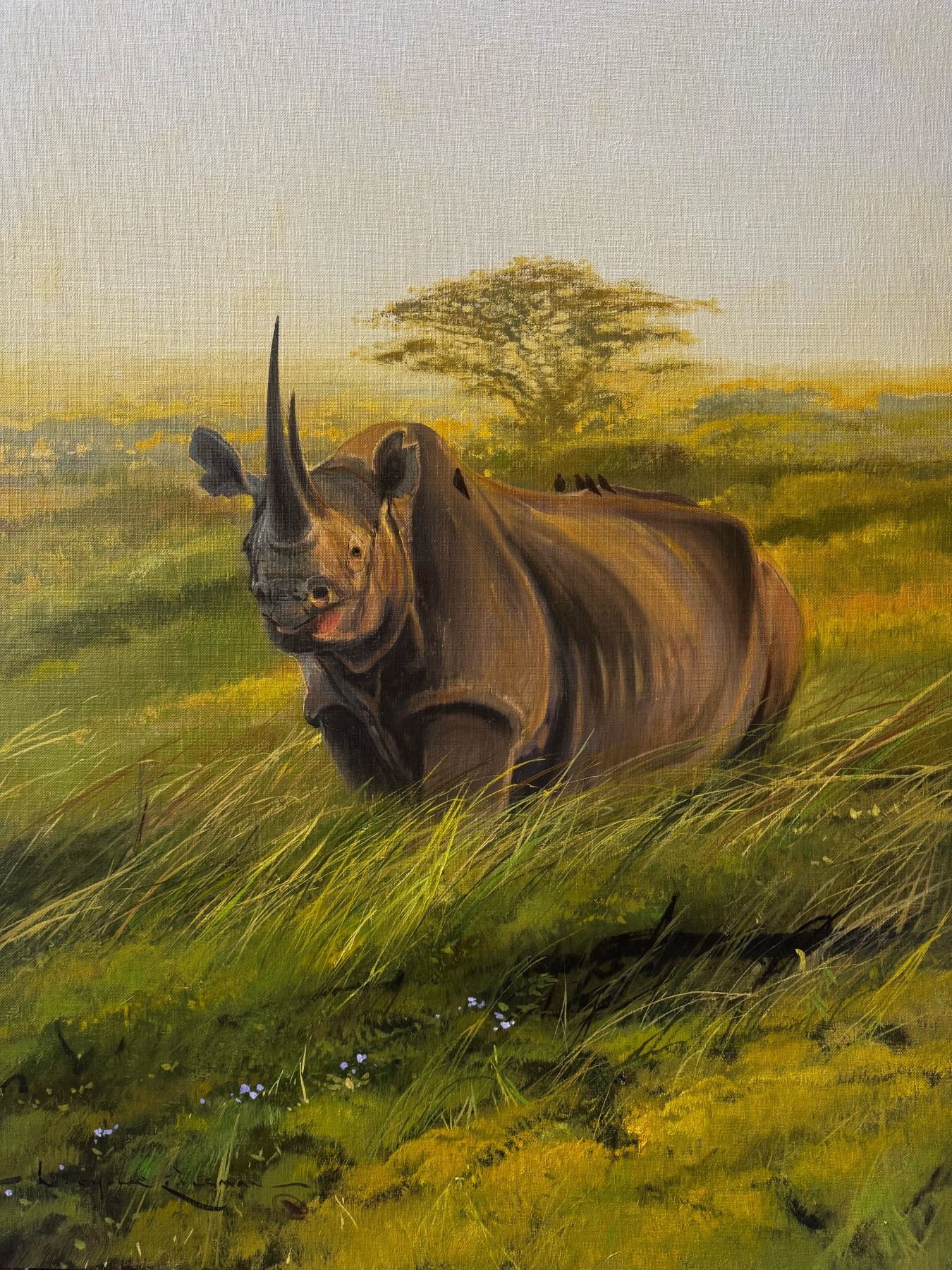 "Dusk" – Black Rhino is a powerful and contemplative piece, reflecting the artist’s deep reverence for wildlife, land, and tradition. In both subject and execution, it offers collectors an opportunity to own a work by one of the most respected names in contemporary Western and sporting art.