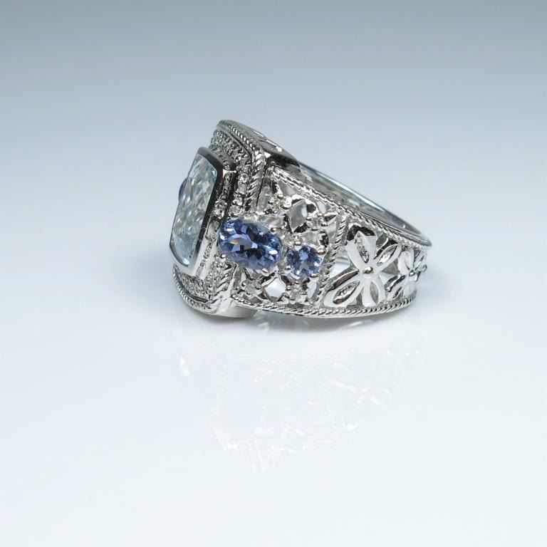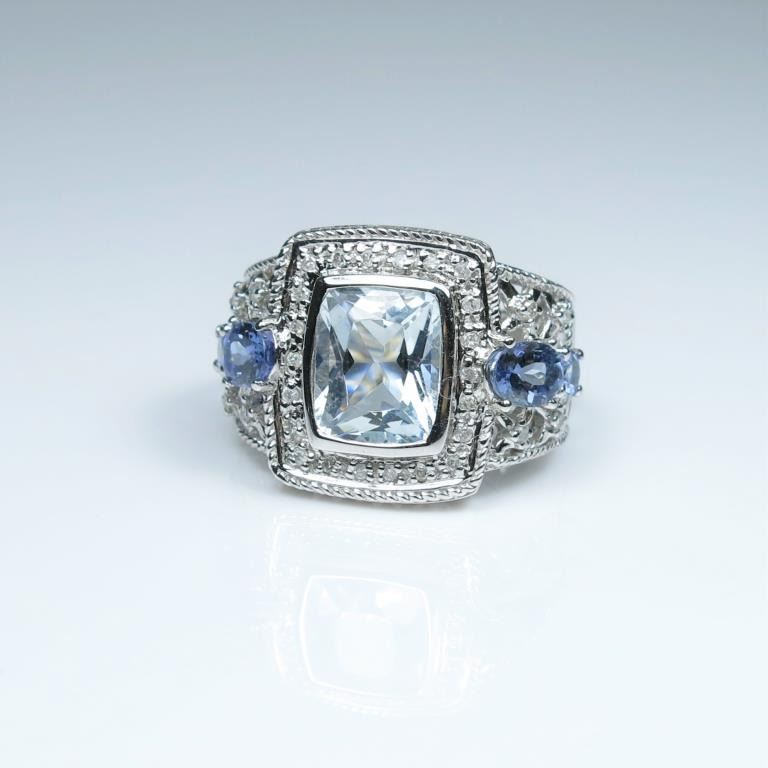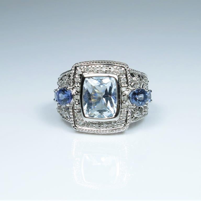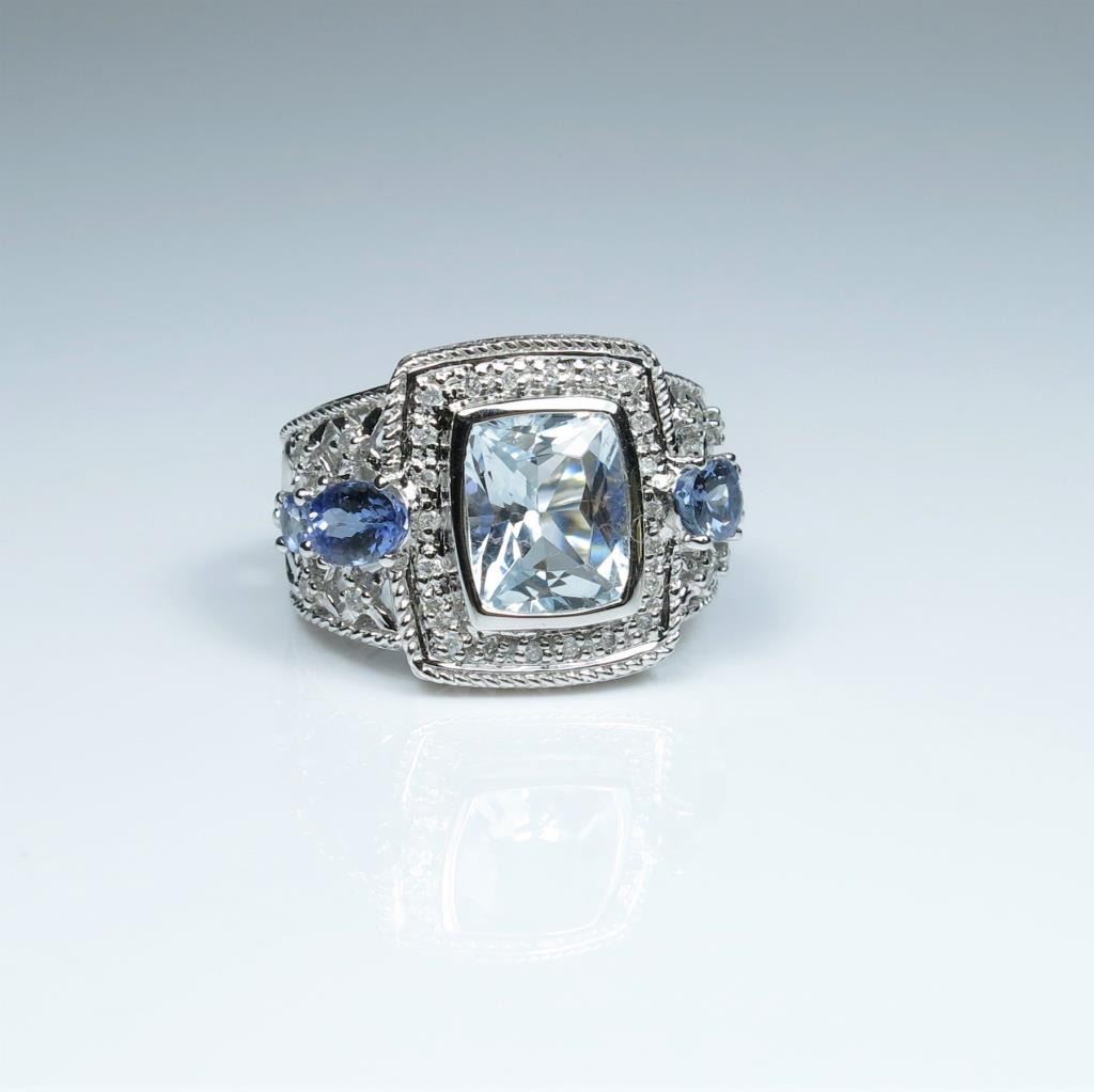 Dynamic Aquamarine, Tanzanite and Diamond Ring