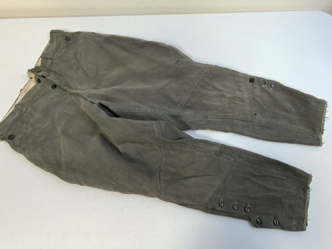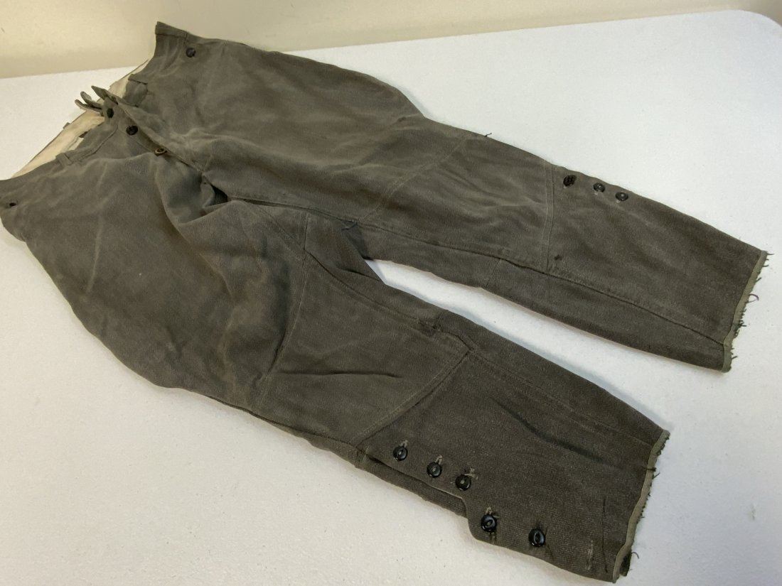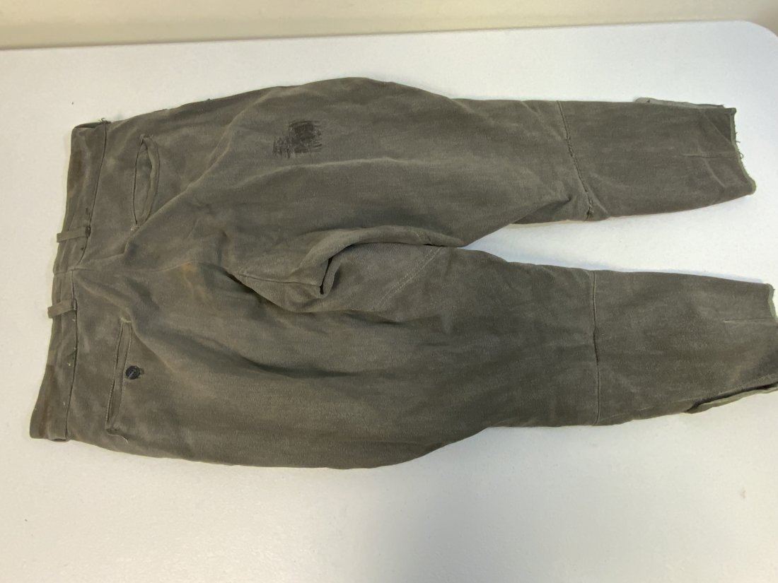 EARLY NAZI GERMAN MILITARY GRAY UNIFORM BRITCHES PANTS . WELL WORN CONDITION WITH SOME REPAIRS .