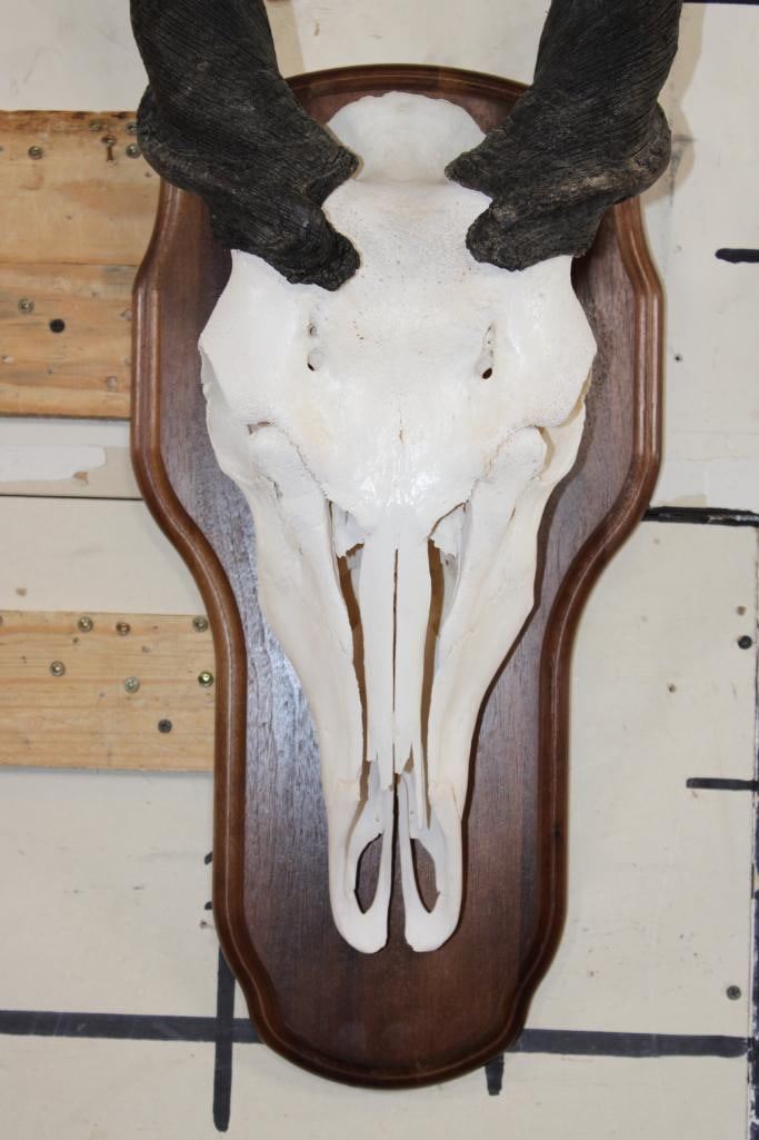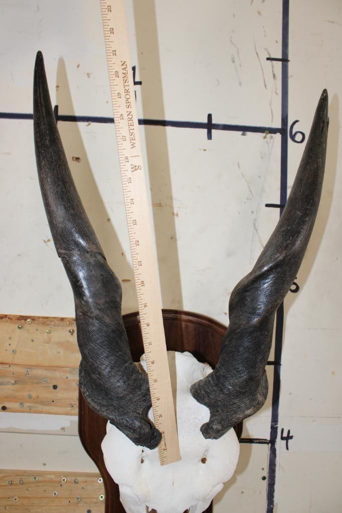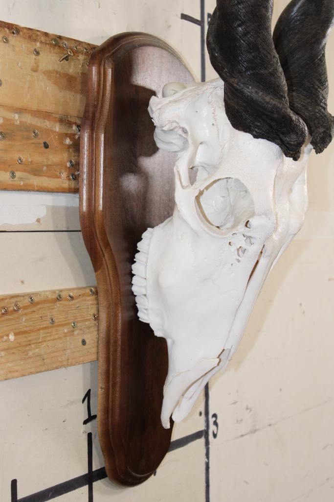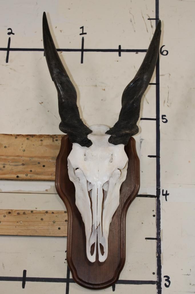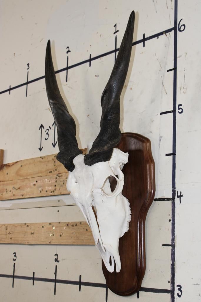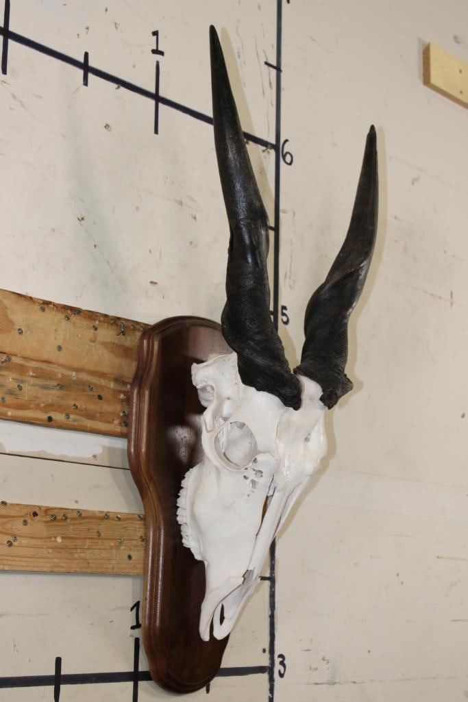 Nice and Clean ELAND Skull on a Wooden Plaque. The Left Horn measures 27.75" around the spiral ridge and the Right Horn measures 28 1/8" around the spiral ridge. TAXIDERMY