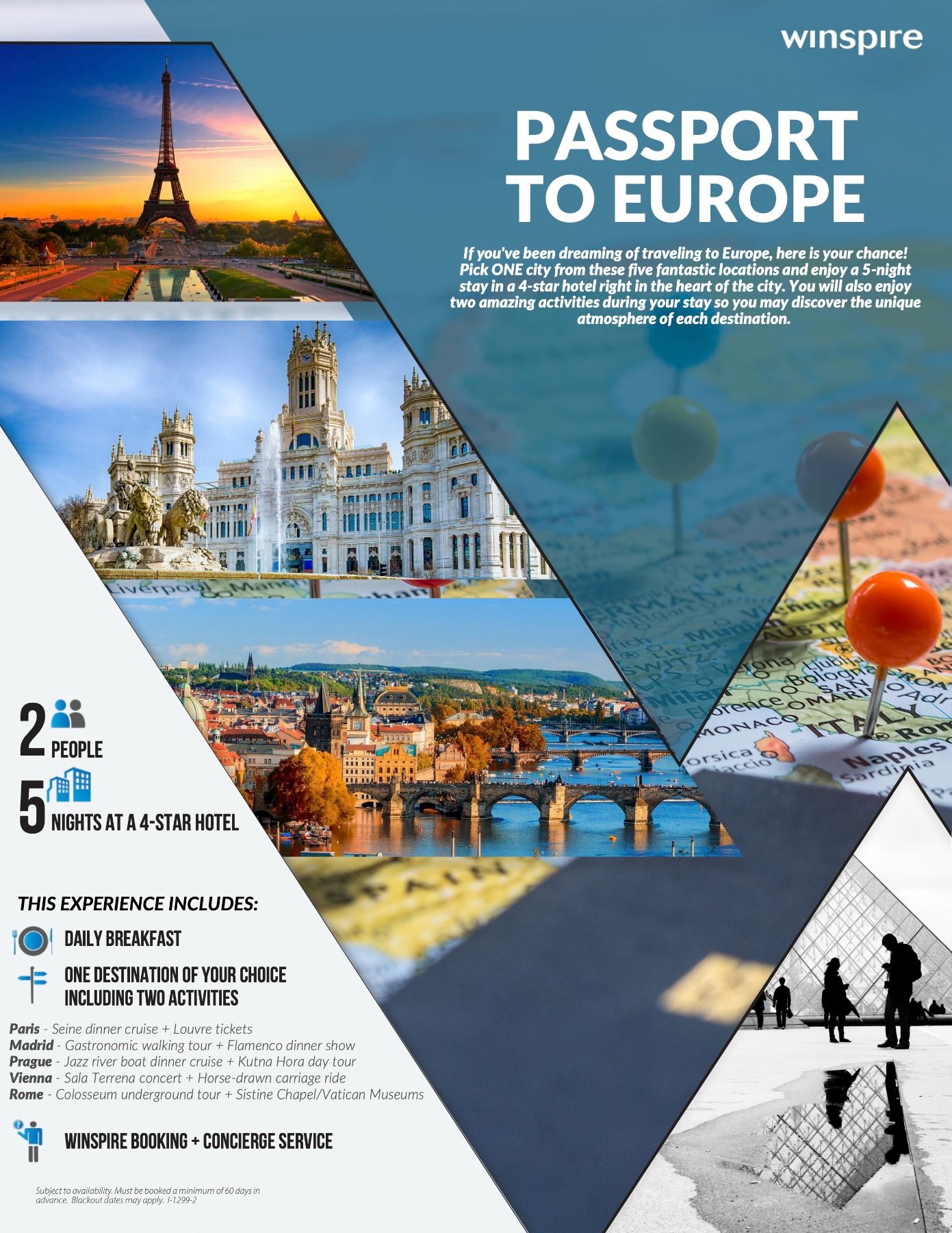 Winspire Travel packages and experiences must be booked within one year of the purchase date. The actual travel date must occur within two years of the purchase date.