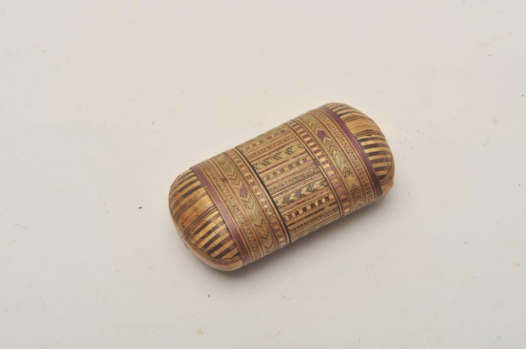 EVE-414 WOVEN CASE MADE BY P.O.W.'SWoven case made by P.O.W.’s during Napoleonic Wars. Measures 4” and very good to almost fine condition. The estate of Eric Vaule. Est.: $125-$250Woven case made by P.O.W.’s during Napoleonic Wars. Measures 4” and very good to almost fine condition. The estate of Eric Vaule. Est.: $125-$250